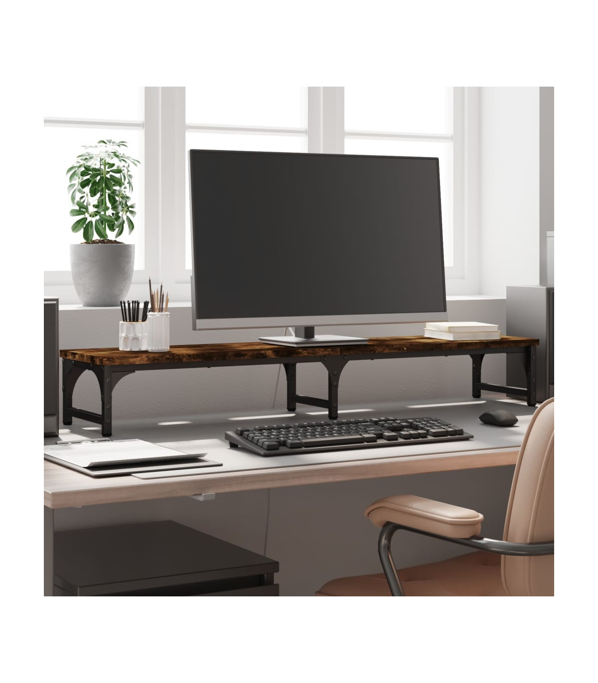 vidaXL Monitor Stand Smoked Oak 105x23x15.5 cm Engineered Wood