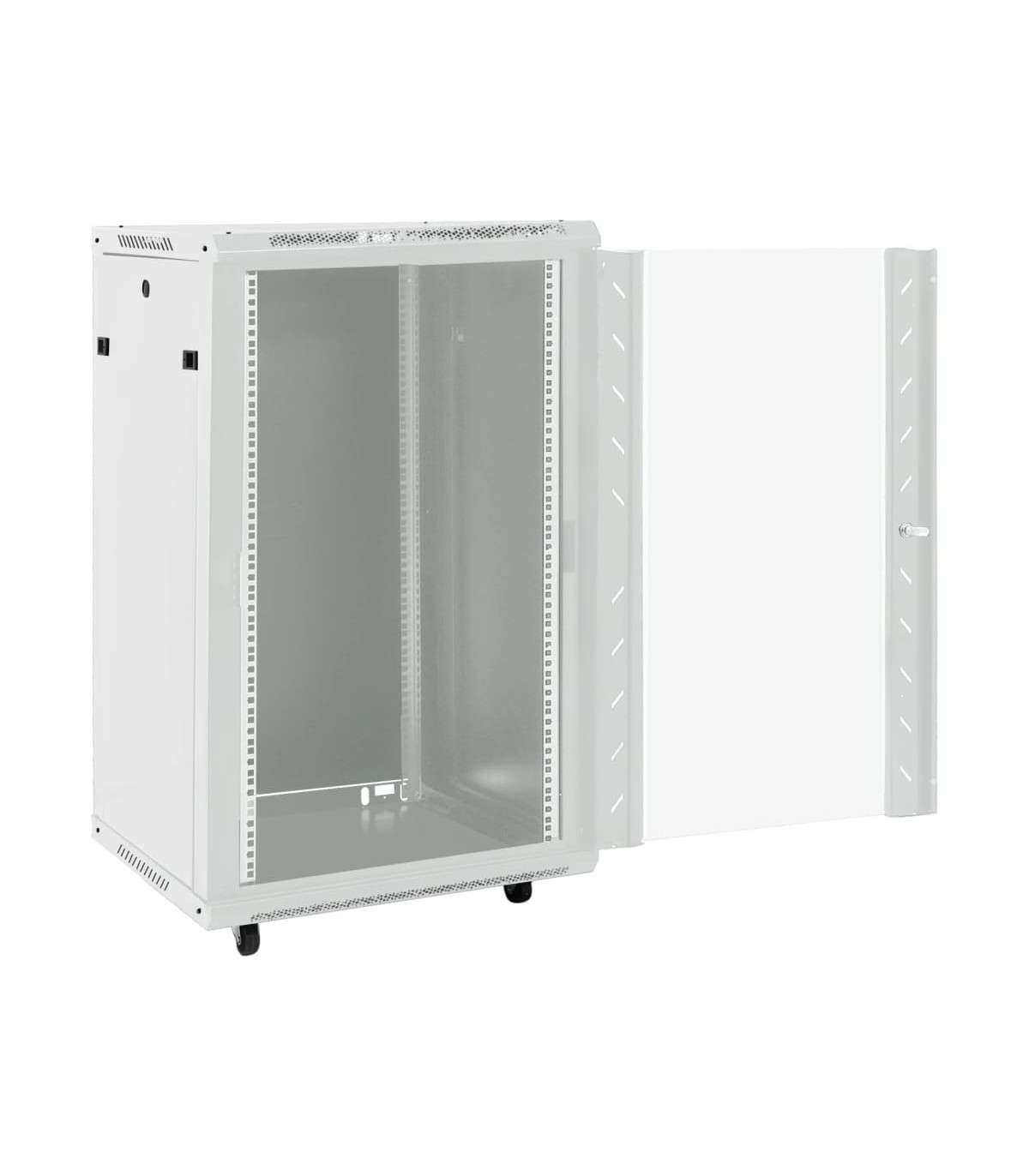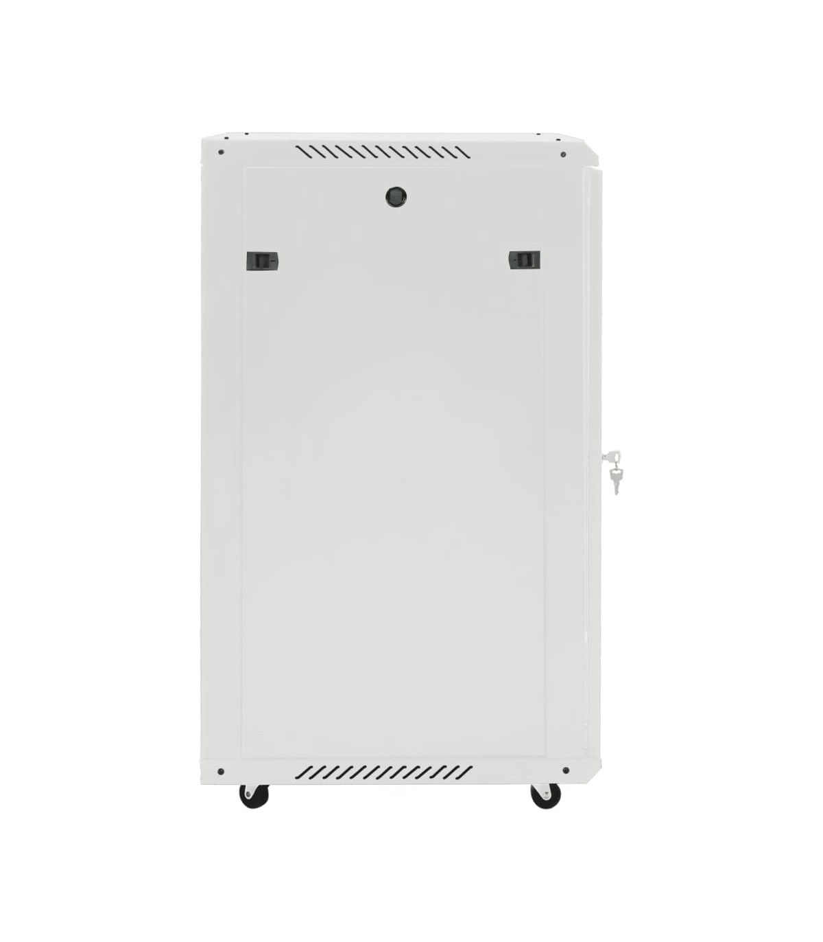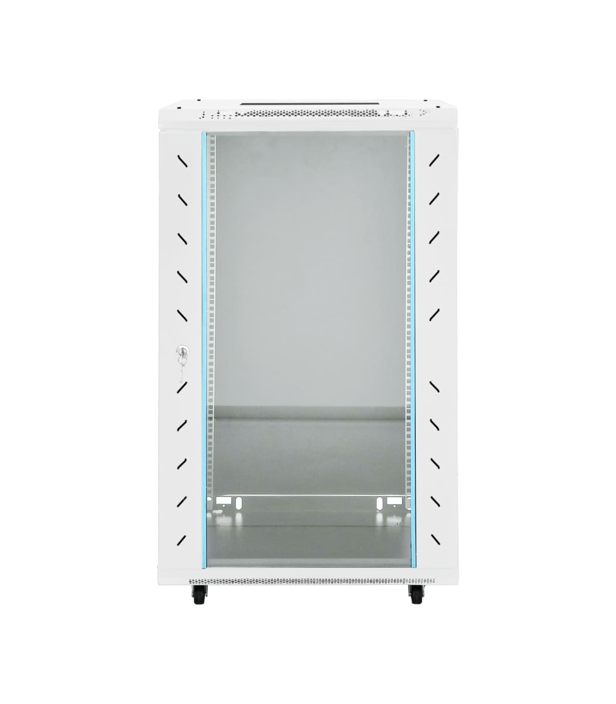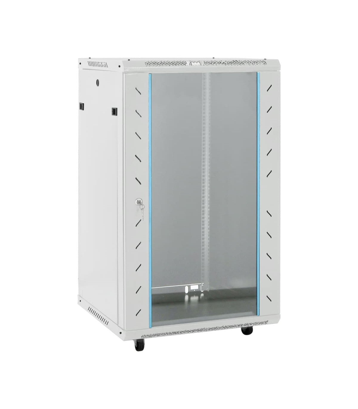 This 22U network cabinet is specially designed for placing network accessories in order, such as a router or fibre optic modem. This data cabinet, featuring a solid structure, is made of premium cold-rolled steel, making it strong and durable to use. It is compatible with 19" standard equipment. The removable side panels make it easy for the installation and maintenance of network accessories. Thanks to the included lock and key, the lockable front door prevents unwanted opening and keeps the items safe. In addition, the swivel feet make the cabinet easy to move around. Please note: The cooling fan is not included.