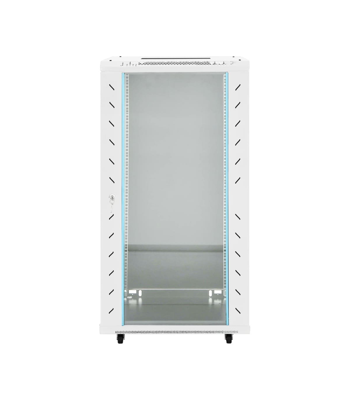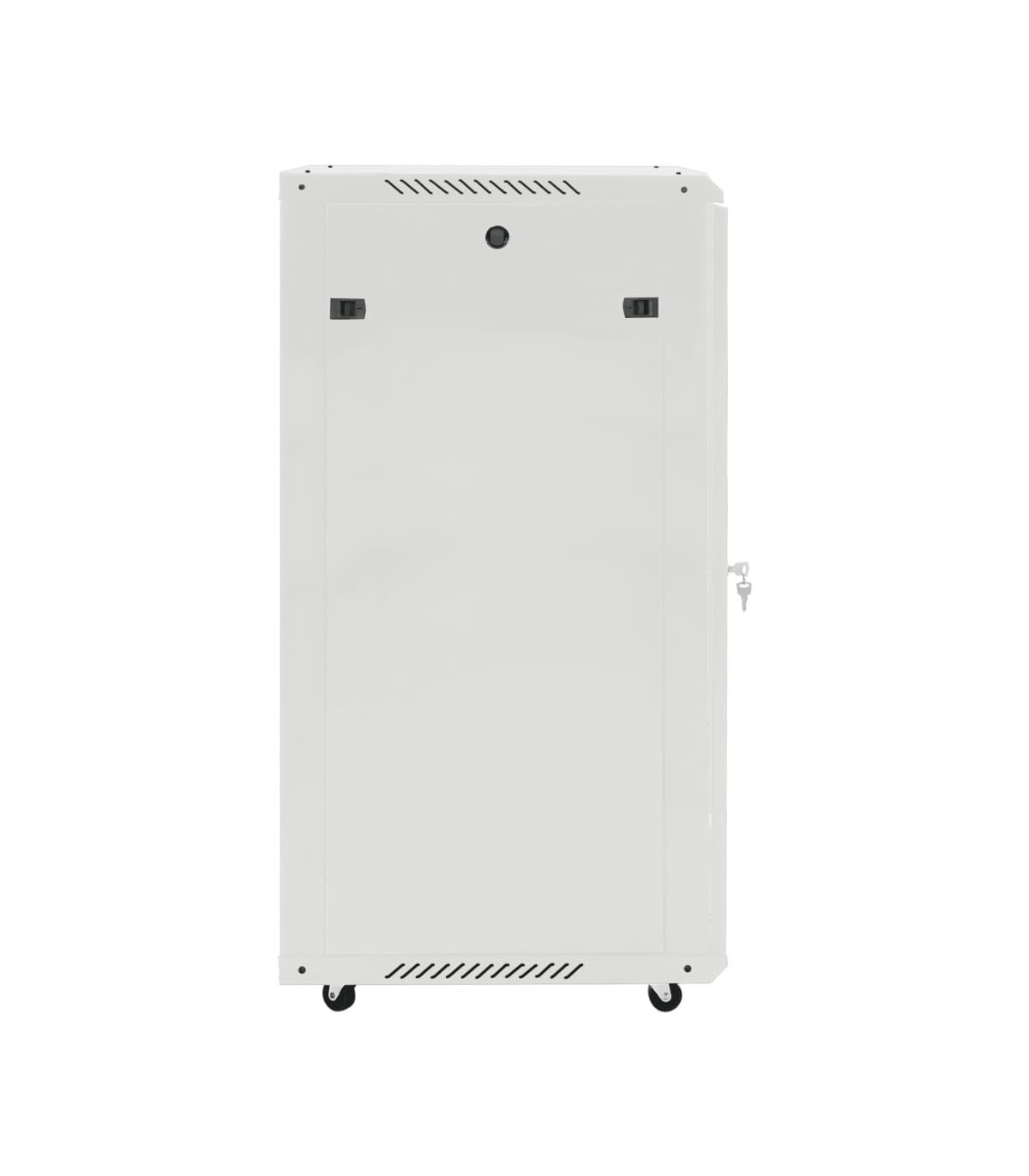 This 22U network cabinet is specially designed for placing network accessories in order, such as a router or fibre optic modem. This data cabinet, featuring a solid structure, is made of premium cold-rolled steel, making it strong and durable to use. It is compatible with 19" standard equipment. The removable side panels make it easy for the installation and maintenance of network accessories. Thanks to the included lock and key, the lockable front door prevents unwanted opening and keeps the items safe. In addition, the swivel feet make the cabinet easy to move around. Please note: The cooling fan is not included.
