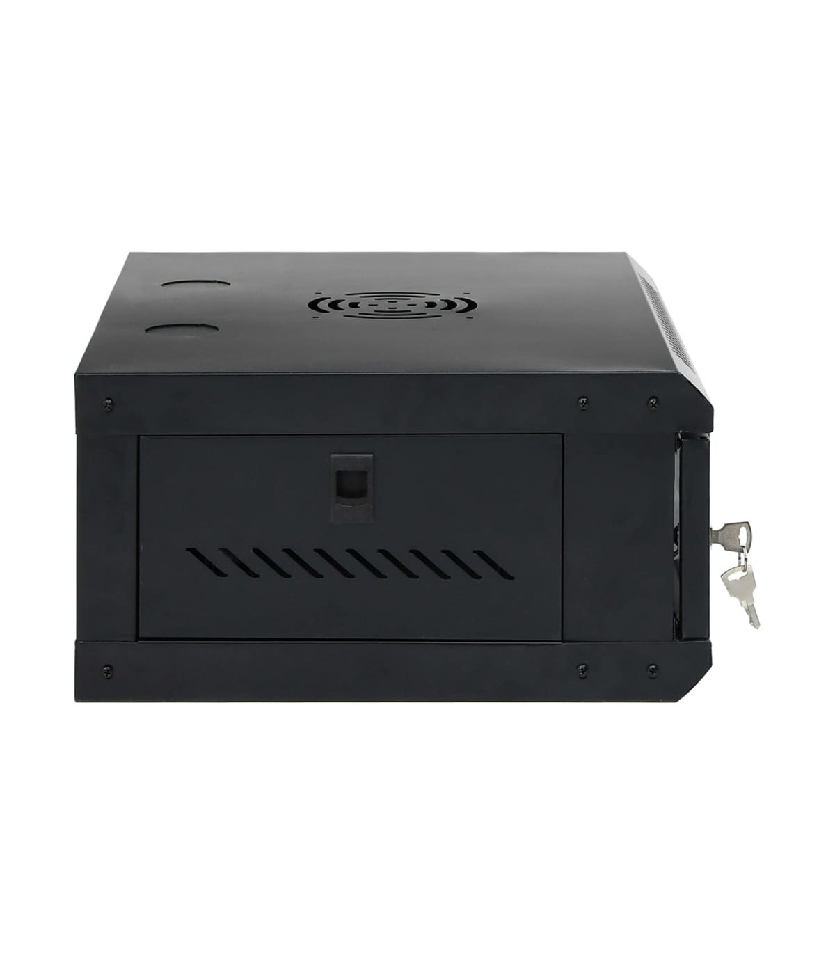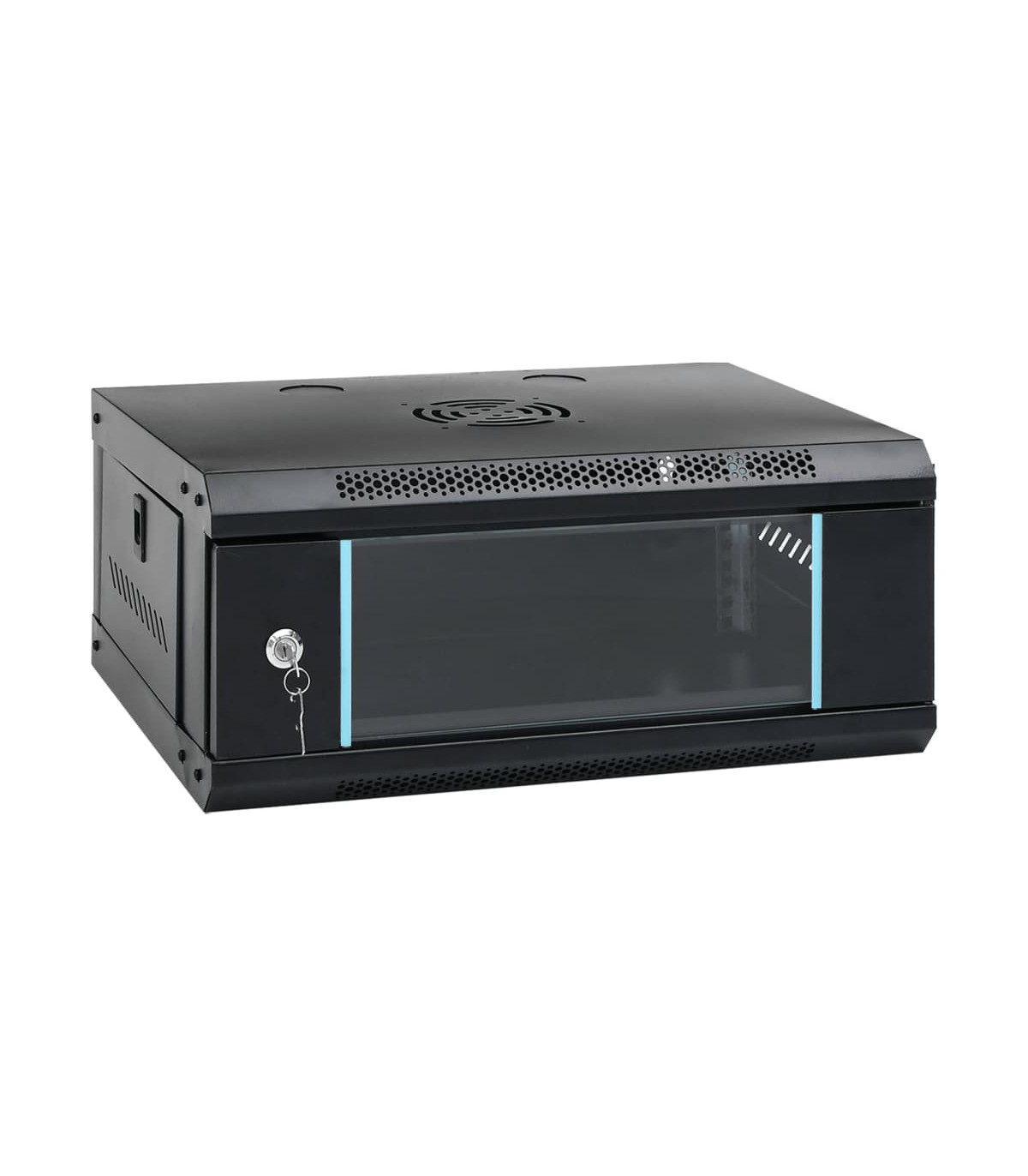 This 4U network cabinet is specially designed for placing network accessories in order, such as a router or fibre optic modem. This data cabinet, featuring a solid structure, is made of premium cold-rolled steel, making it strong and durable to use. It is compatible with 19" standard equipment. The removable side panels make it easy for the installation and maintenance of network accessories. Thanks to the included lock and key, the lockable front door prevents unwanted opening and keeps the items safe. You can either attach the cabinet to the wall or put it on the table. Please note: The cooling fan is not included.