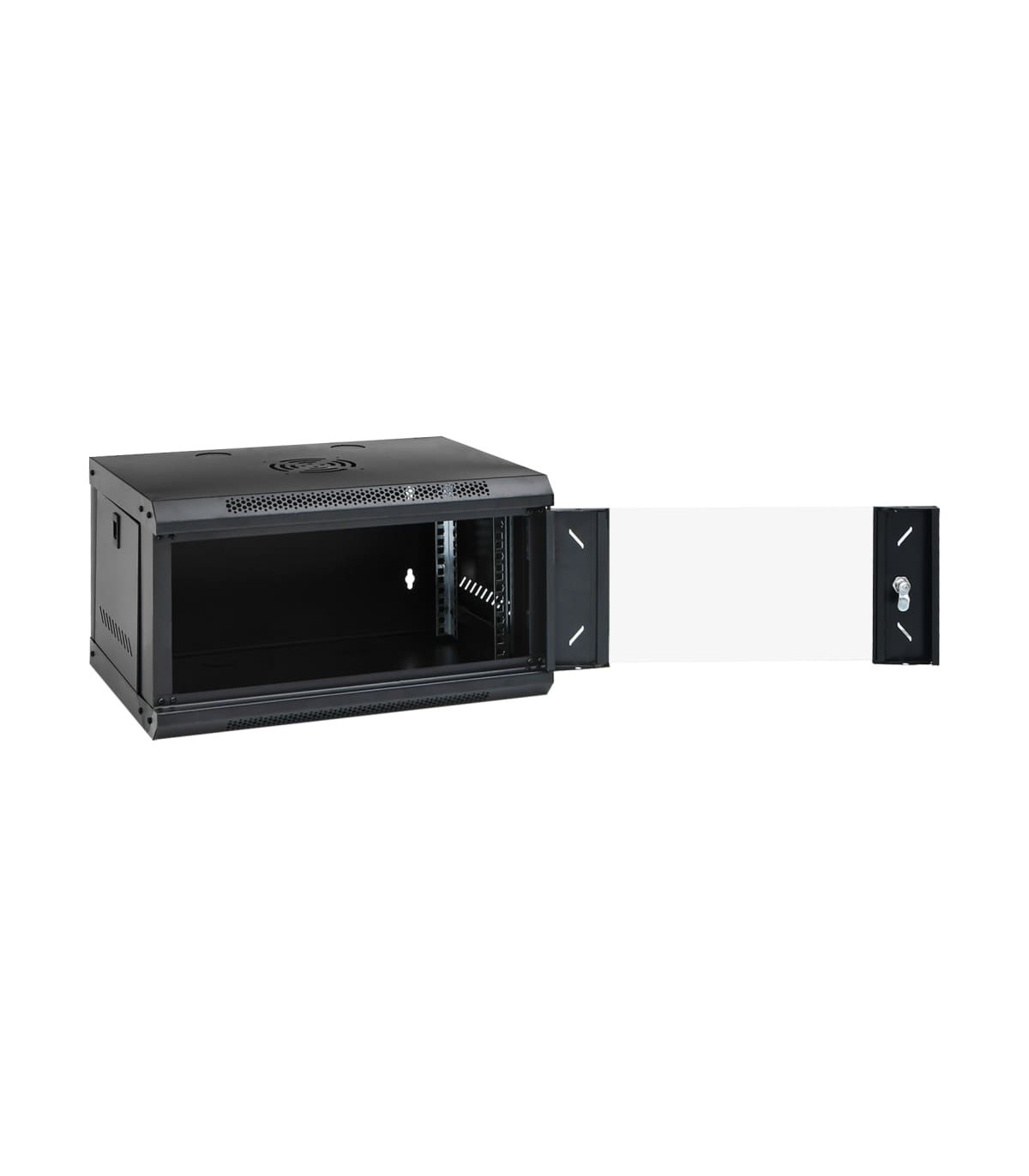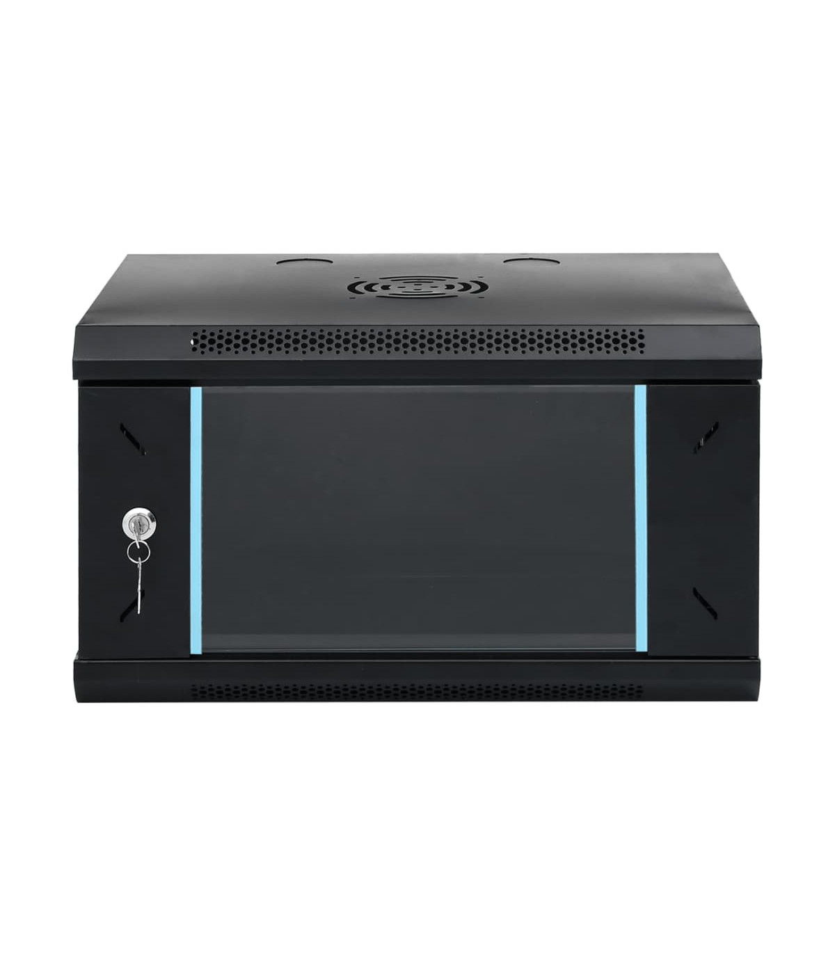 This 4U network cabinet is specially designed for placing network accessories in order, such as a router or fibre optic modem. This data cabinet, featuring a solid structure, is made of premium cold-rolled steel, making it strong and durable to use. It is compatible with 19" standard equipment. The removable side panels make it easy for the installation and maintenance of network accessories. Thanks to the included lock and key, the lockable front door prevents unwanted opening and keeps the items safe. You can either attach the cabinet to the wall or put it on the table. Please note: The cooling fan is not included.
