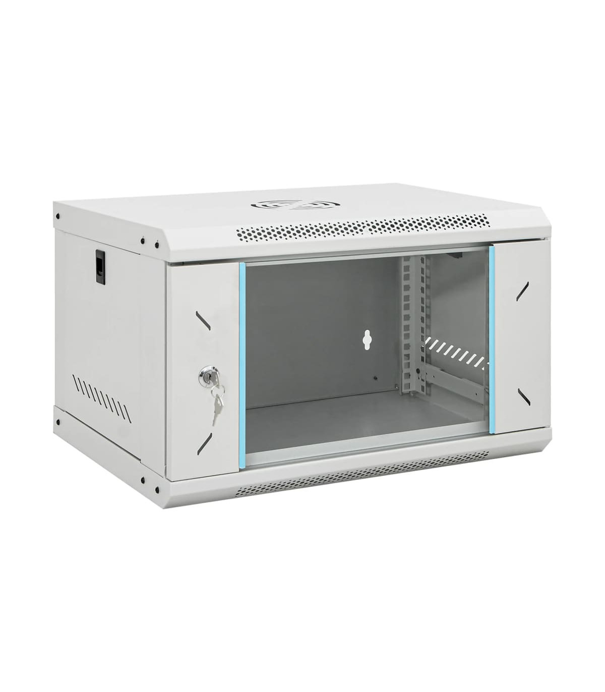 This 4U network cabinet is specially designed for placing network accessories in order, such as a router or fibre optic modem. This data cabinet, featuring a solid structure, is made of premium cold-rolled steel, making it strong and durable to use. It is compatible with 19" standard equipment. The removable side panels make it easy for the installation and maintenance of network accessories. Thanks to the included lock and key, the lockable front door prevents unwanted opening and keeps the items safe. You can either attach the cabinet to the wall or put it on the table. Please note: The cooling fan is not included.