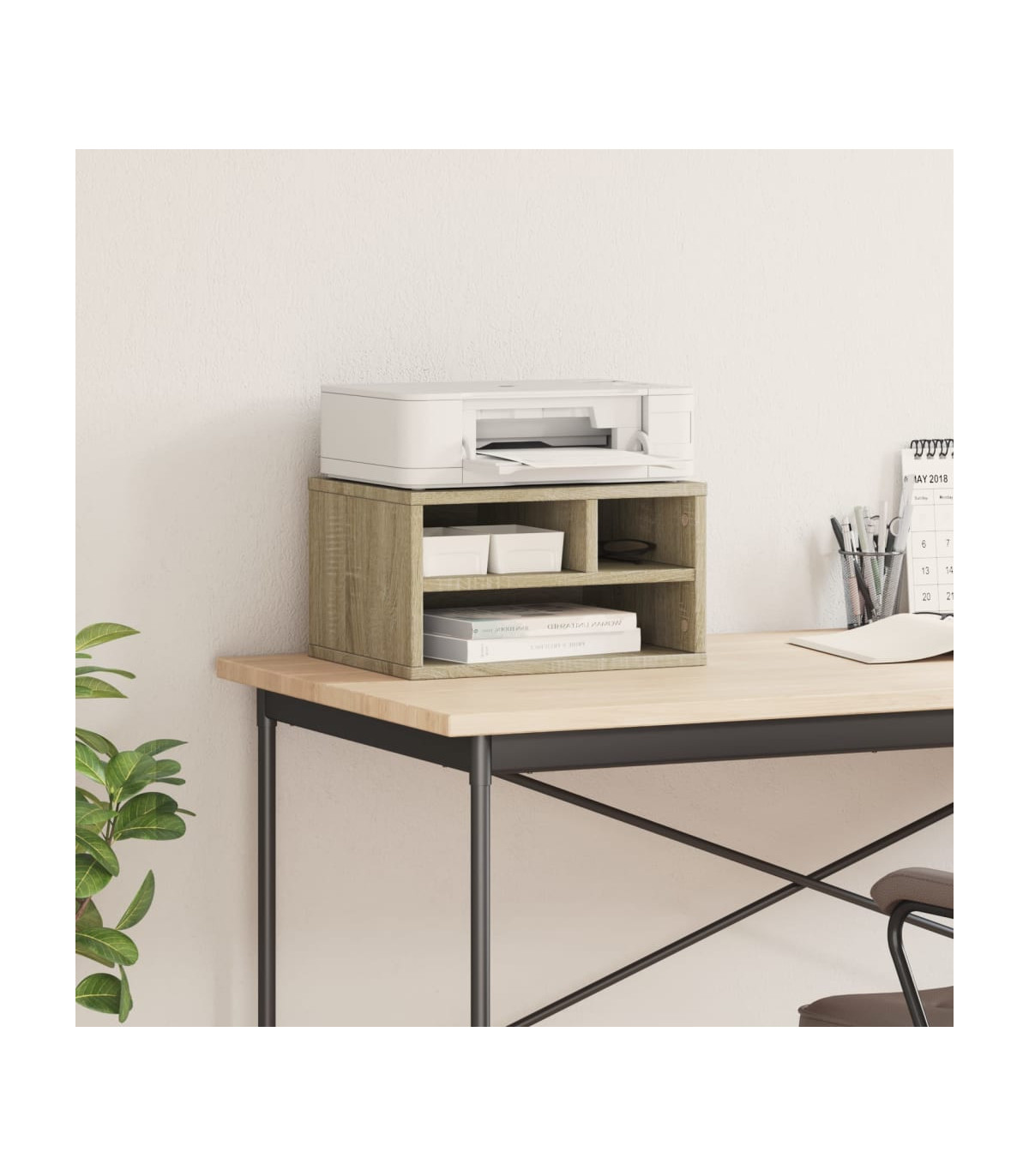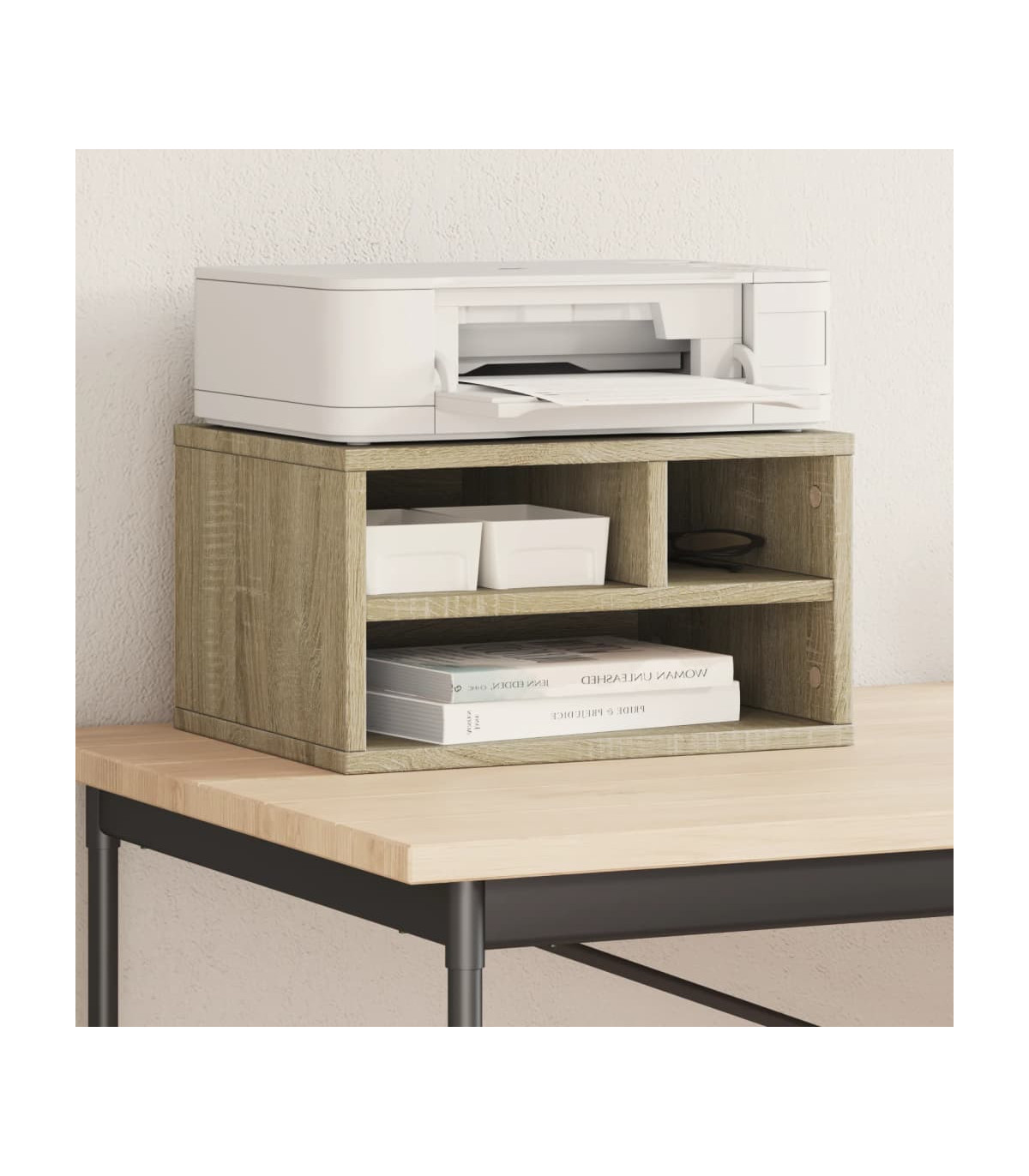 This printer stand provides easy access to everything, keeping your workplace organised and tidy. Durable material: The engineered wood is of exceptional quality with smooth surface and also features strength, stability and resistance to moisture.Ample storage space: The top shelf is designed for printers, and fax machines, with storage space underneath for files, paper, books, and other office supplies. Keep everything easily reached and make your workplace organised and tidy.Multifunctional organiser: The file organiser can be used not only as a printer stand but also as a bookshelf, nightstand, coffee stand, side table, etc. It can also be widely used in the kitchen to arrange condiment jars, kitchenware, plates, and dishes.