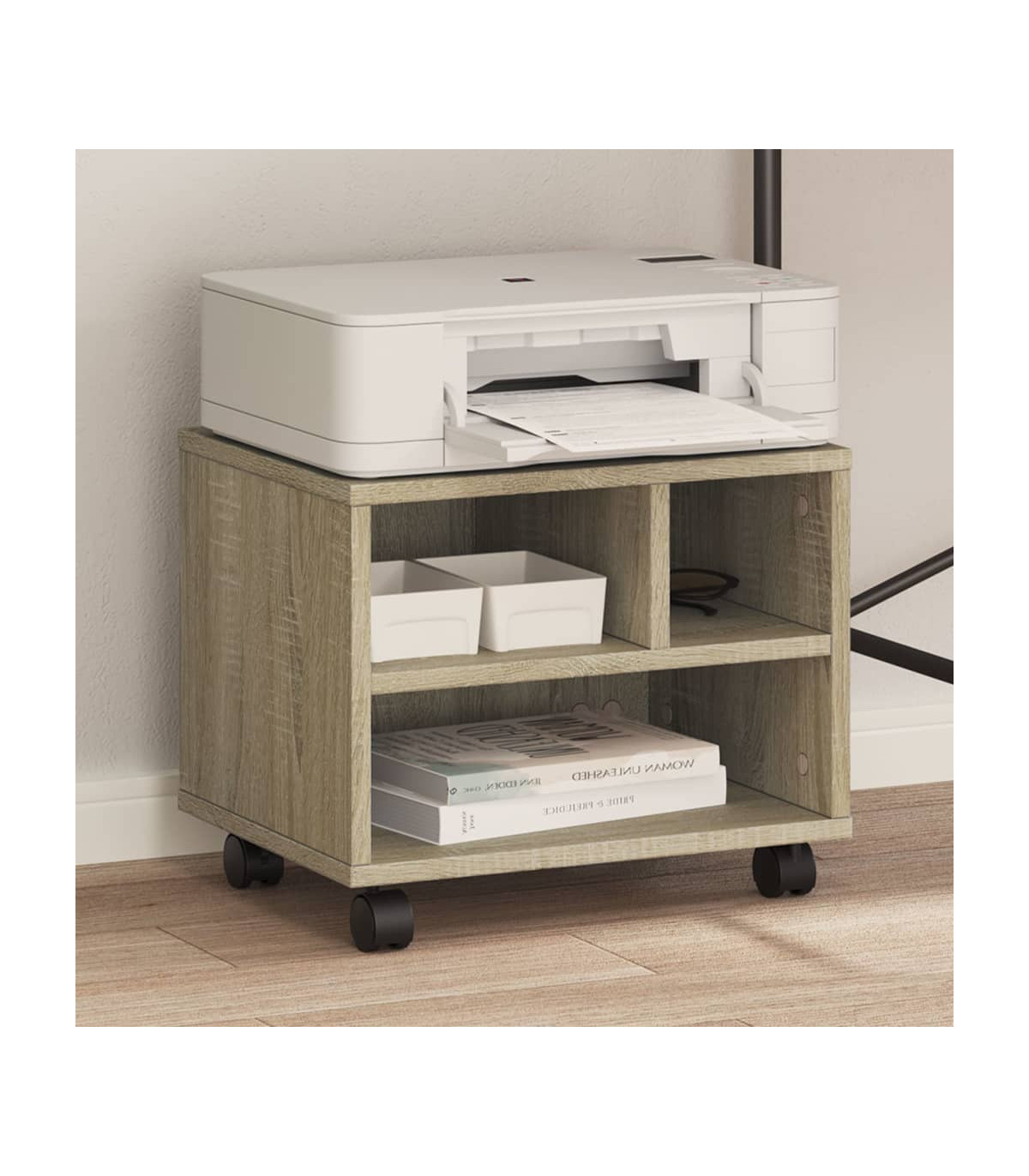 vidaXL Printer Stand with Wheels Sonoma Oak 41x32x34,5 cm