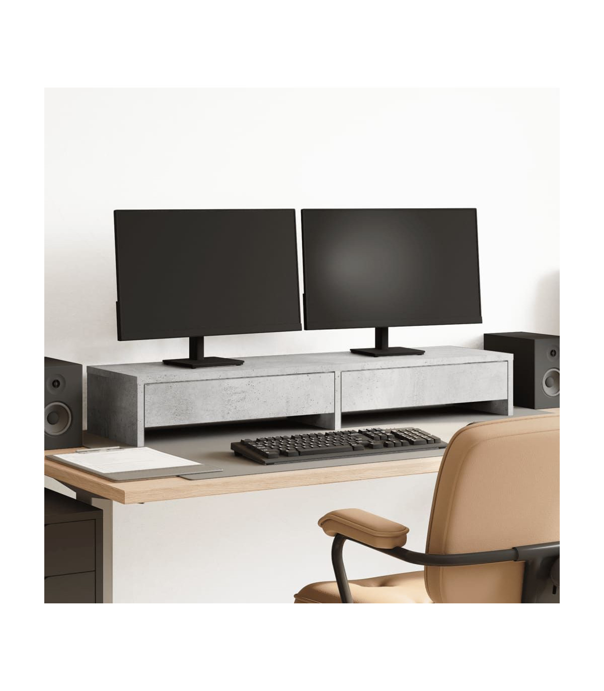 vidaXL Monitor Stand with Drawers Concrete Grey 100x27x15 cm Engineered Wood