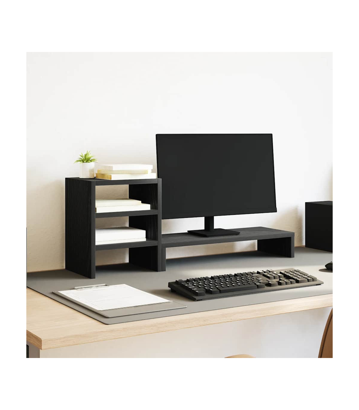 Enhance your workspace with this practical monitor stand for better viewing comfort and style. Stable and durable material: Engineered wood is a durable and stable material with a smooth surface that is resistant to moisture, warping, and splitting, making it a reliable choice for various projects.Ample storage space: The screen stand includes a desk organiser, offering extensive storage options for all your office essentials and helping to keep your workspace organized and clutter-free.Easy maintenance: Thanks to its smooth surface, the monitor platform is easy to clean with a damp cloth and requires less maintenance.