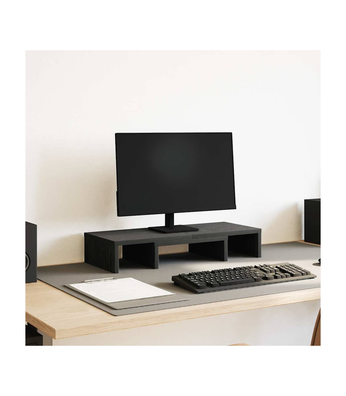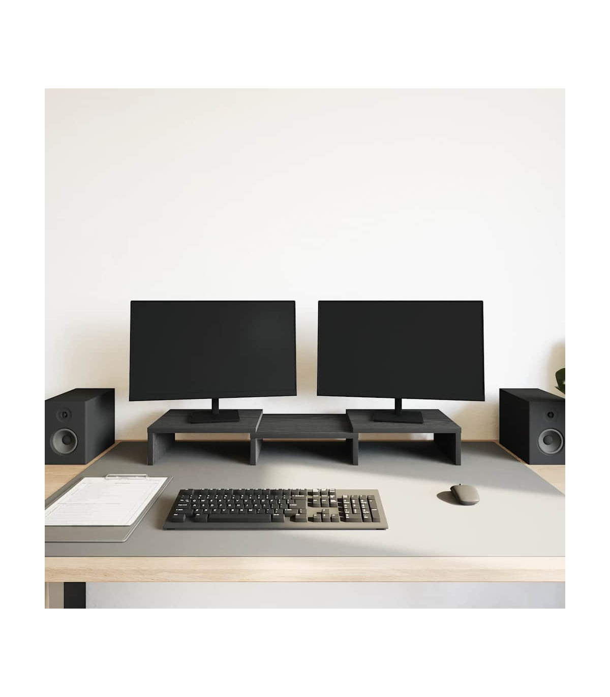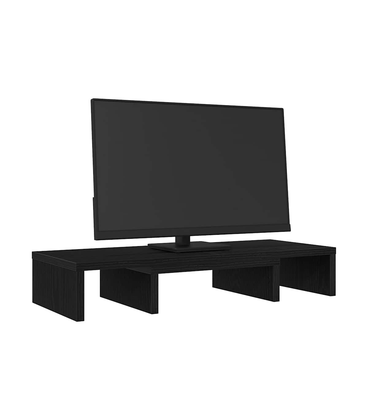 Enhance your workspace with the adjustable monitor stand for better viewing comfort and style! Stable and durable material: Engineered wood is a durable and stable material with a smooth surface that is resistant to moisture, warping, and splitting, making it a reliable choice for various projects.Customisable length: By extending the two larger monitor stands, this configuration maximizes the overall stand's length, offering a spacious platform ideally suited for two monitors.Customisable viewing angle: By adjusting the angles of the two larger stand risers, you can find the perfect viewing angle for reduced strain and increased productivity.Additional storage: The lower section includes ample storage compartments, offering generous space to neatly organize books, notebooks, keyboards, and accommodate a laptop.Easy maintenance: Thanks to its smooth surface, the computer monitor stand is easy to clean with a damp cloth and requires less maintenance.