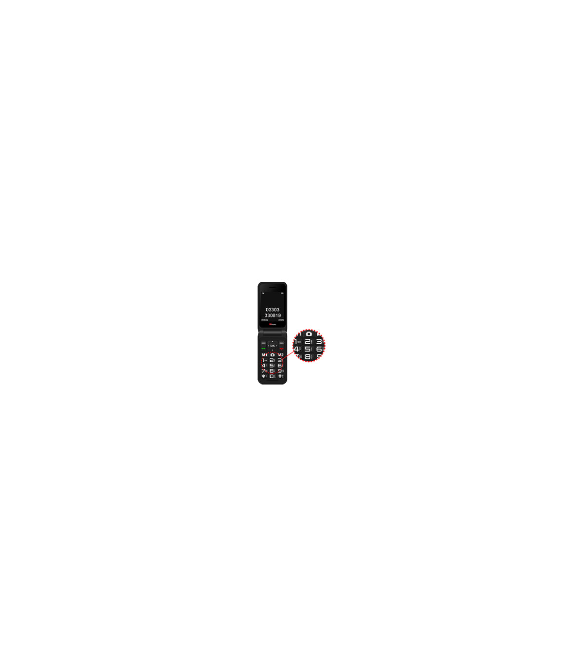 TTfone Black TT760 Flip 4G Mobile with Dock Charger, Vodafone SIM