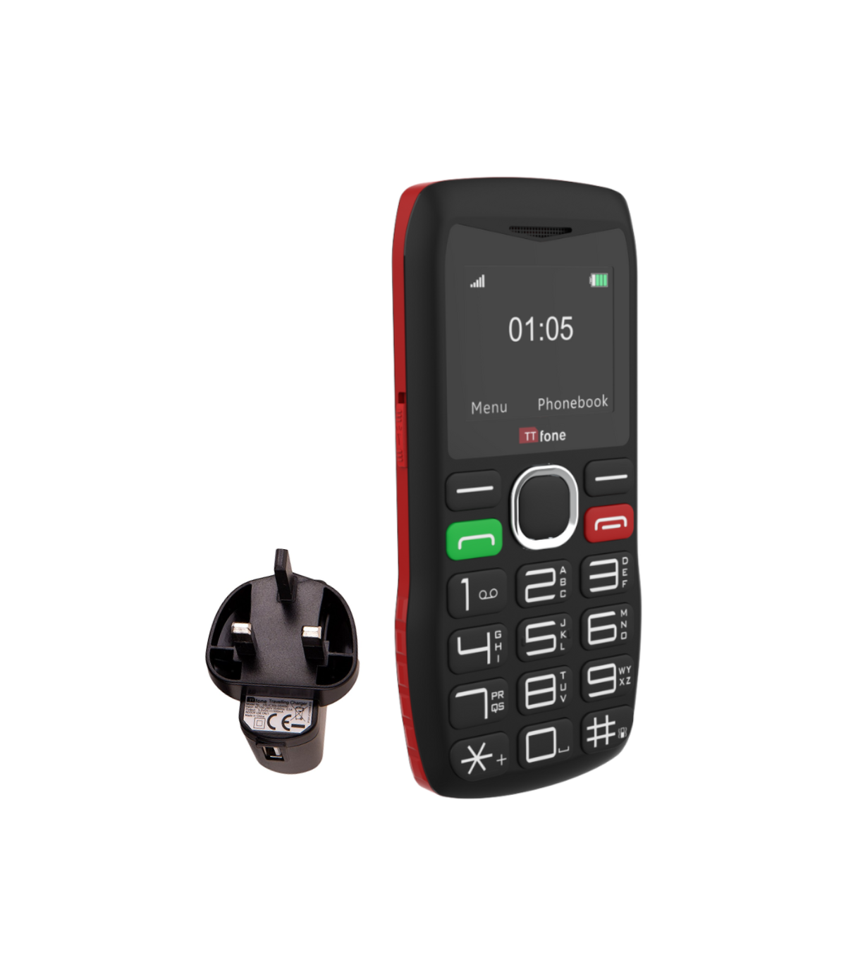 TTfone TT880 Easy-to-Use Big Button Mobile Phone with Vodafone Pay As You Go SIM, USB C Mains Charger