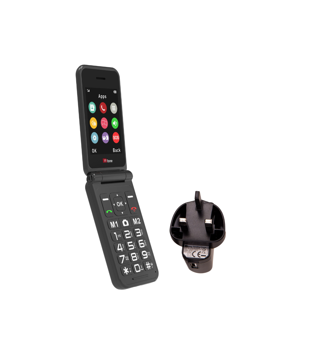 TTfone Black TT760 Flip 4G Mobile with USB C Mains Charger