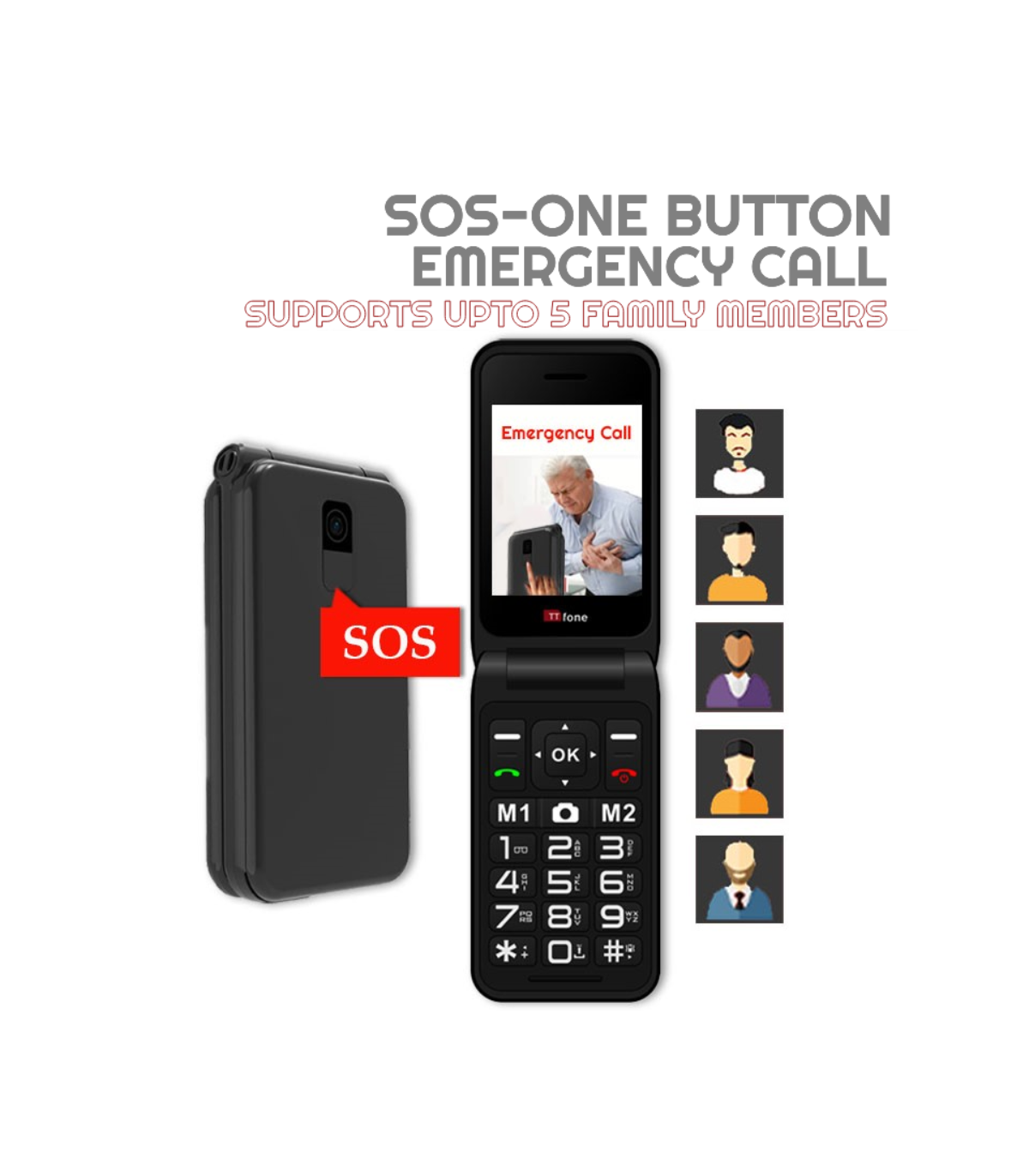 TTfone Black TT760 Flip 4G Big Button Mobile Phone for the Elderly with Emergency Assistance Button. It comes with a Mains Charger and a USB C Cable.
