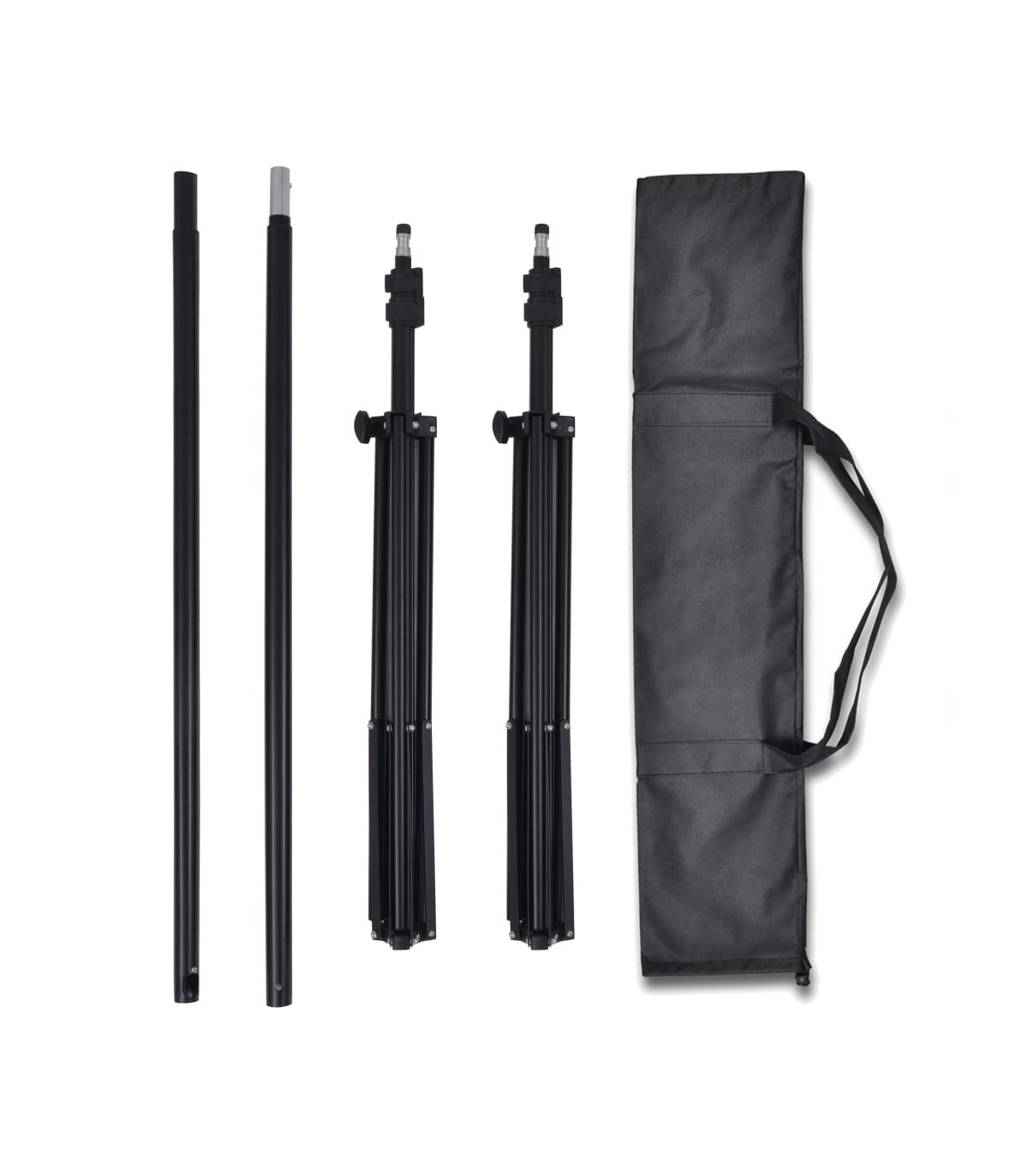 A backdrop system is an indispensable piece of professional photography equipment. Our photo studio kit contains 3 high quality 100% cotton backdrops and a collapsible, adjustable frame that pack into a convenient carrying bag for shoots on location. The system can be combined with one of our backdrops in different colours. The flexible background system is easy to set up and can be used for portraits, advertising photography, or product photography. Delivery includes 2 stands, 2 crossbar segments, 3 backdrops and 1 carrying bag.