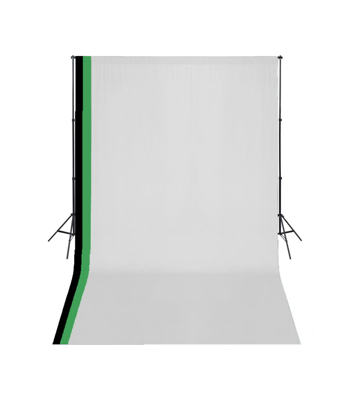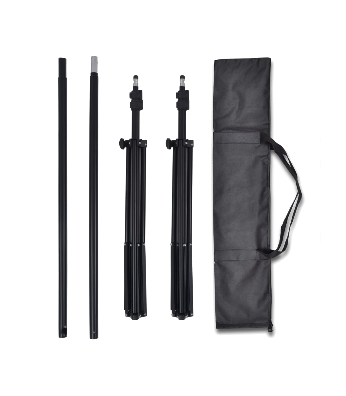 A backdrop system is an indispensable piece of professional photography equipment. Our photo studio kit contains 3 high quality 100% cotton backdrops and a collapsible, adjustable frame that pack into a convenient carrying bag for shoots on location. The system can be combined with one of our backdrops in different colours. The flexible background system is easy to set up and can be used for portraits, advertising photography, or product photography. Delivery includes 2 stands, 2 crossbar segments, 3 backdrops and 1 carrying bag.