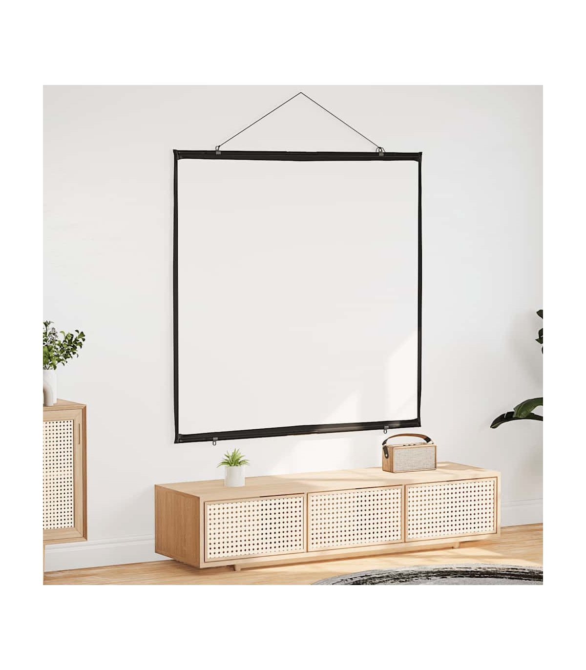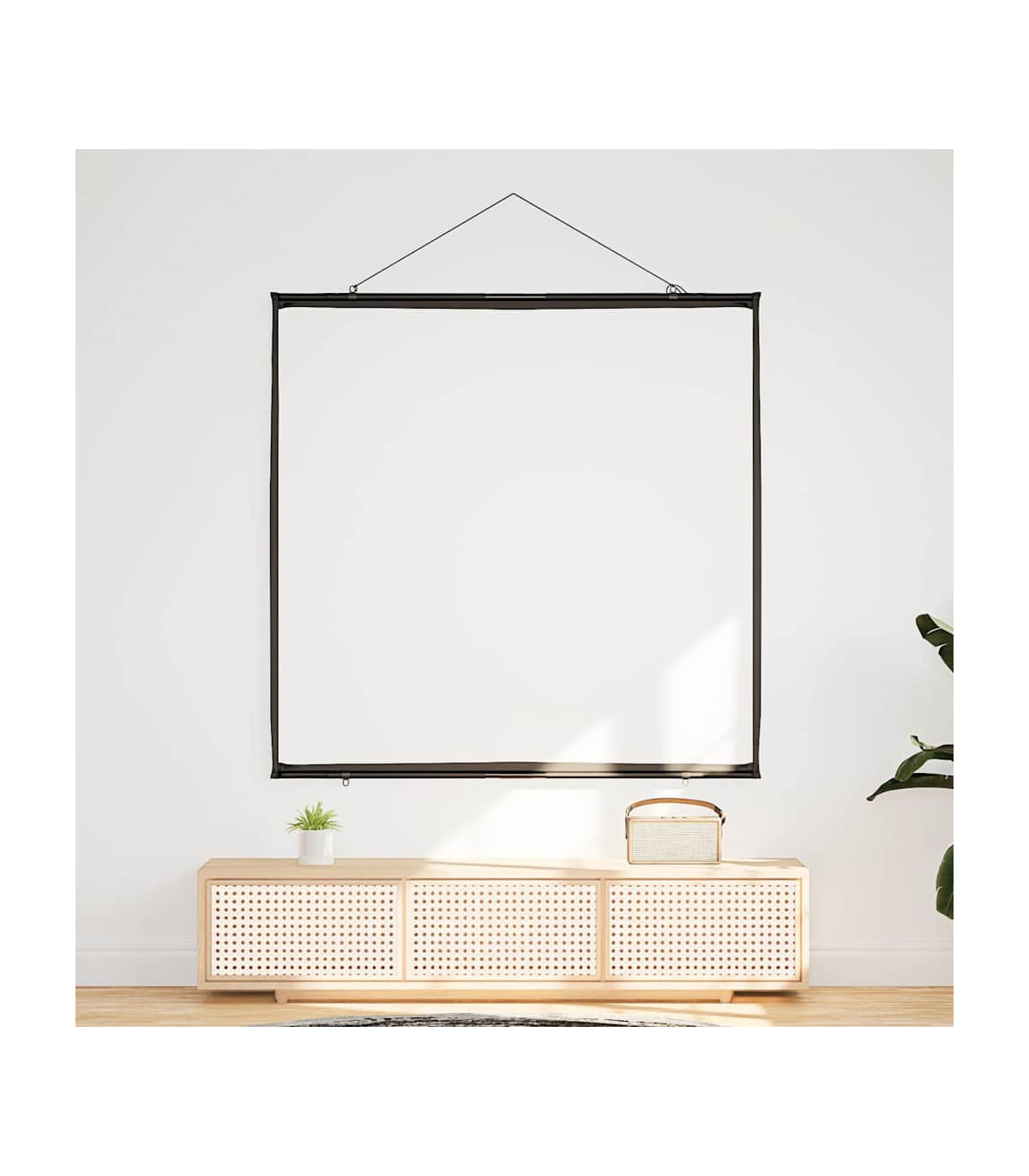 The projection screen is perfect for classrooms, home theater movies, public displays, and conference room presentations. Enhanced viewing experience: The matte screen evenly diffuses projected light, delivering sharp, clear images from any angle. Its optimised surface absorbs light to reduce reflections, ensuring consistent image quality, while the black borders enhance picture focus and contrast.Wall-hanging: Thanks to its lightweight design, the projector screen is easy to hang on any wall, enhancing your viewing experience for movies or presentations.Strong and durable material: Constructed from 100% polyester and reinforced with a sturdy iron housing, this projector screen offers exceptional strength and longevity, ensuring it withstands regular use.Portable and versatile application: The projector screen is perfect for movie nights at home, office presentations, or classroom teaching, and its portable design allows you to easily move it from one location to another, adapting effortlessly to any occasion.Effortless assembly: Designed for quick setup without a stand, this projector screen can be ready in minutes. Simply use the durable rope to hang it, and the included metal tubes ensure the fabric stays taut for an optimal display.