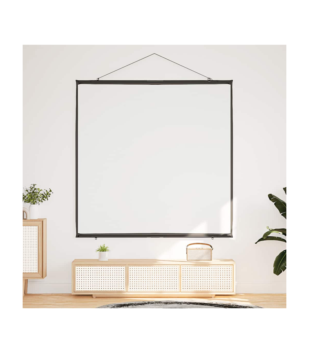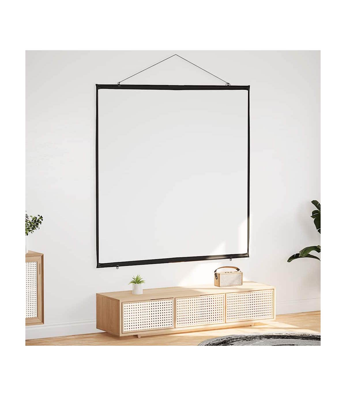 The projection screen is perfect for classrooms, home theater movies, public displays, and conference room presentations. Enhanced viewing experience: The matte screen evenly diffuses projected light, delivering sharp, clear images from any angle. Its optimised surface absorbs light to reduce reflections, ensuring consistent image quality, while the black borders enhance picture focus and contrast.Wall-hanging: Thanks to its lightweight design, the projector screen is easy to hang on any wall, enhancing your viewing experience for movies or presentations.Strong and durable material: Constructed from 100% polyester and reinforced with a sturdy iron housing, this projector screen offers exceptional strength and longevity, ensuring it withstands regular use.Portable and versatile application: The projector screen is perfect for movie nights at home, office presentations, or classroom teaching, and its portable design allows you to easily move it from one location to another, adapting effortlessly to any occasion.Effortless assembly: Designed for quick setup without a stand, this projector screen can be ready in minutes. Simply use the durable rope to hang it, and the included metal tubes ensure the fabric stays taut for an optimal display.