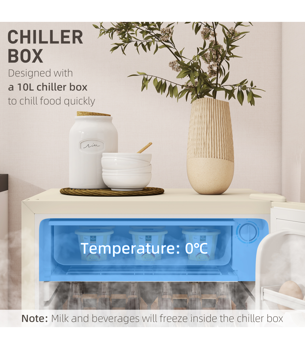 - Temperature knob to adjust coolness, from 0-10℃