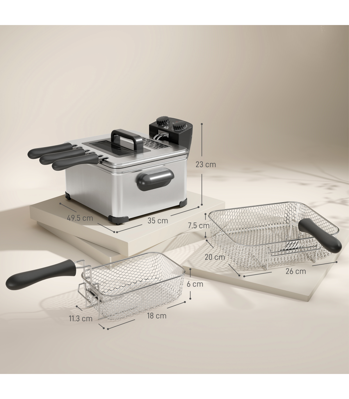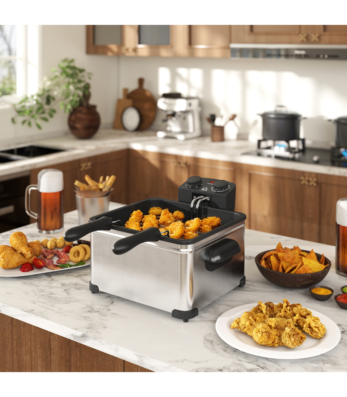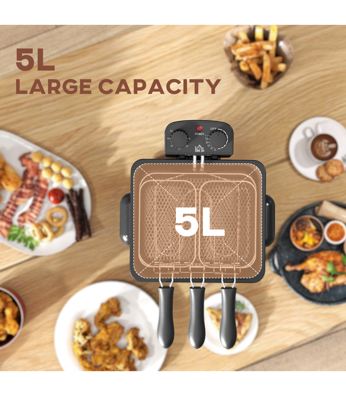 - 5L oil capacity, 1.6kg food load, varied basket sizes for big meals