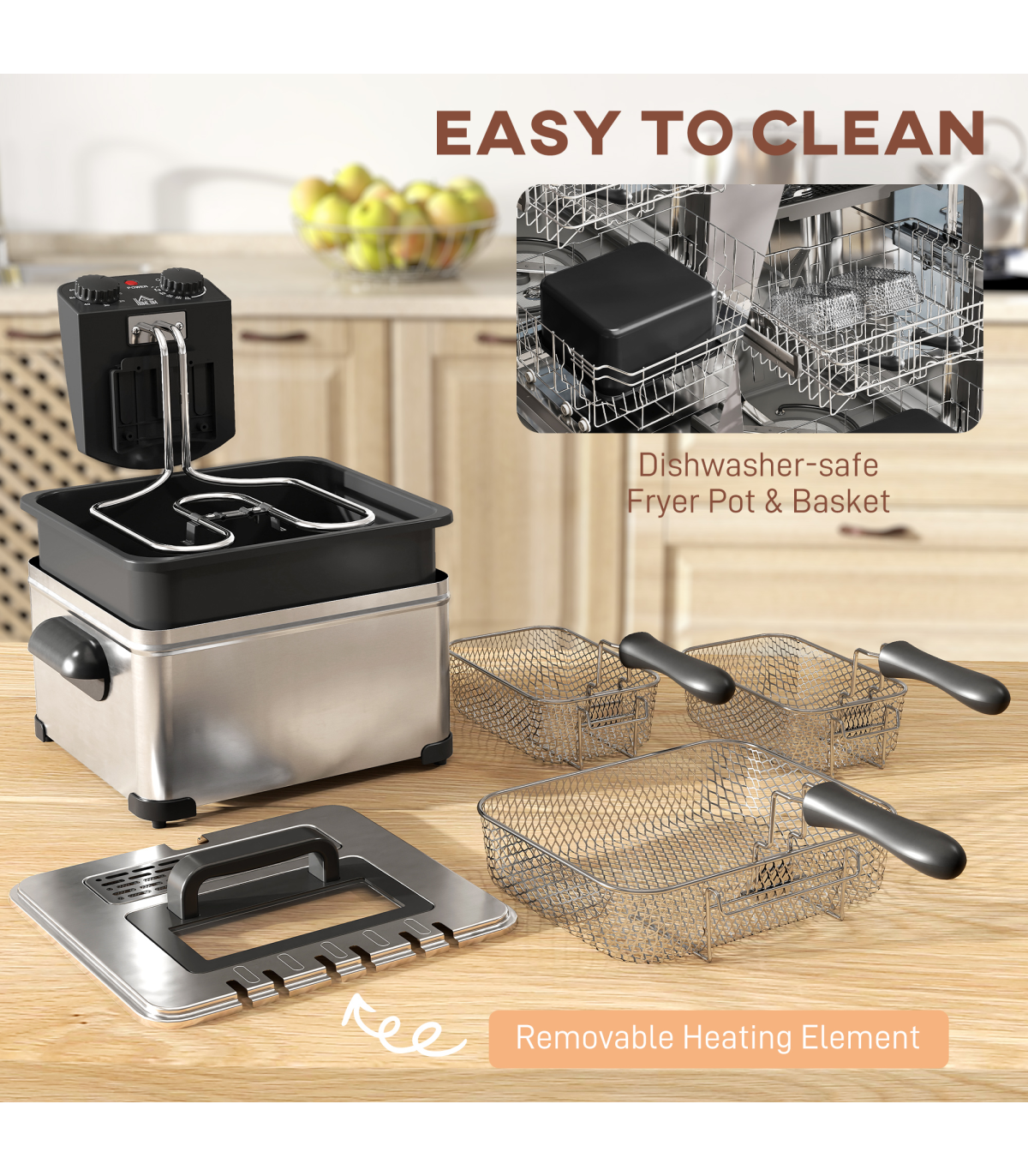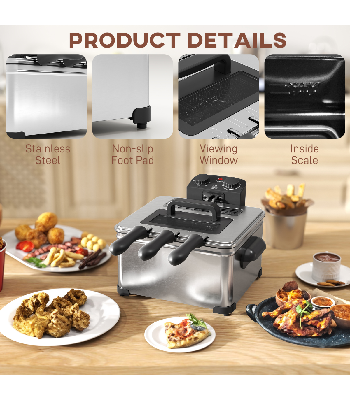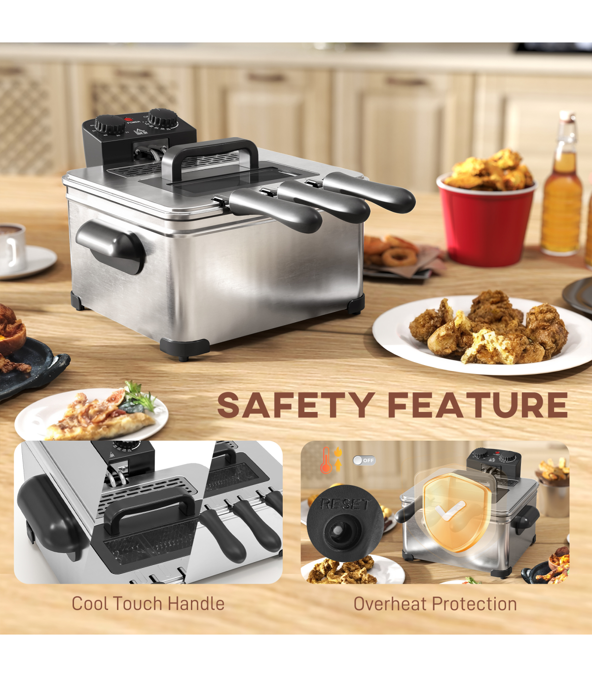 - 5L oil capacity, 1.6kg food load, varied basket sizes for big meals