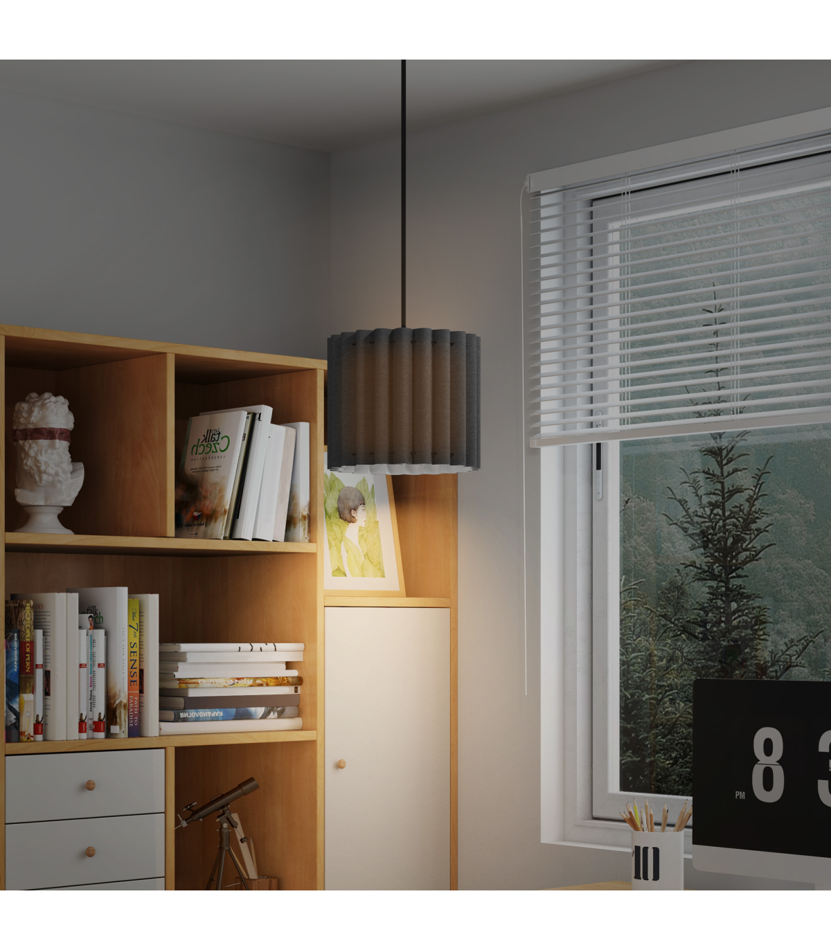 - Linen-feel fabric lampshade softly diffuses light for a warm ambiance