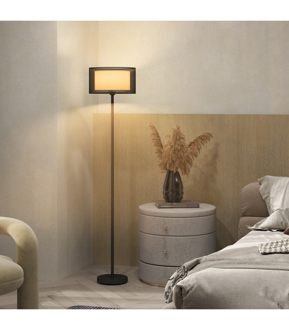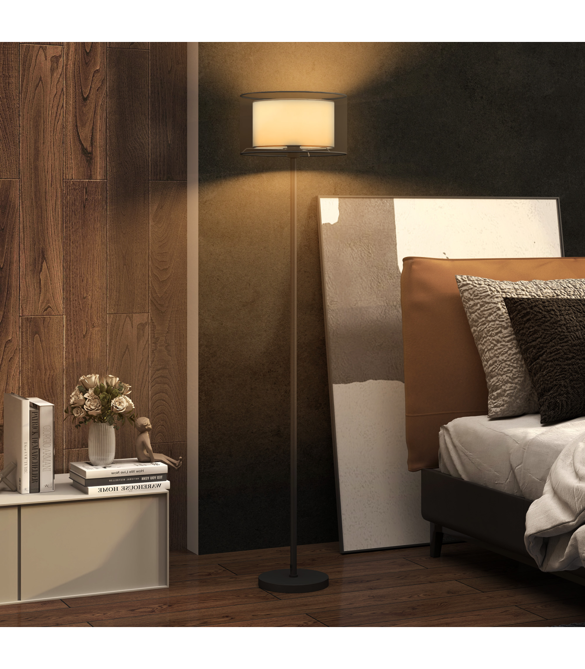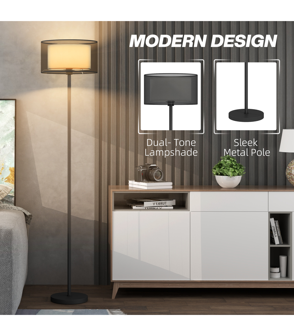 - Modern dual-tone lampshade enhances room aesthetics
