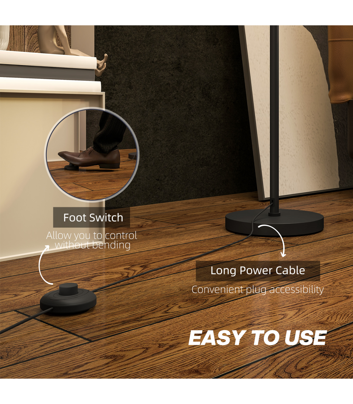 - Foot switch on power cord for easy operation