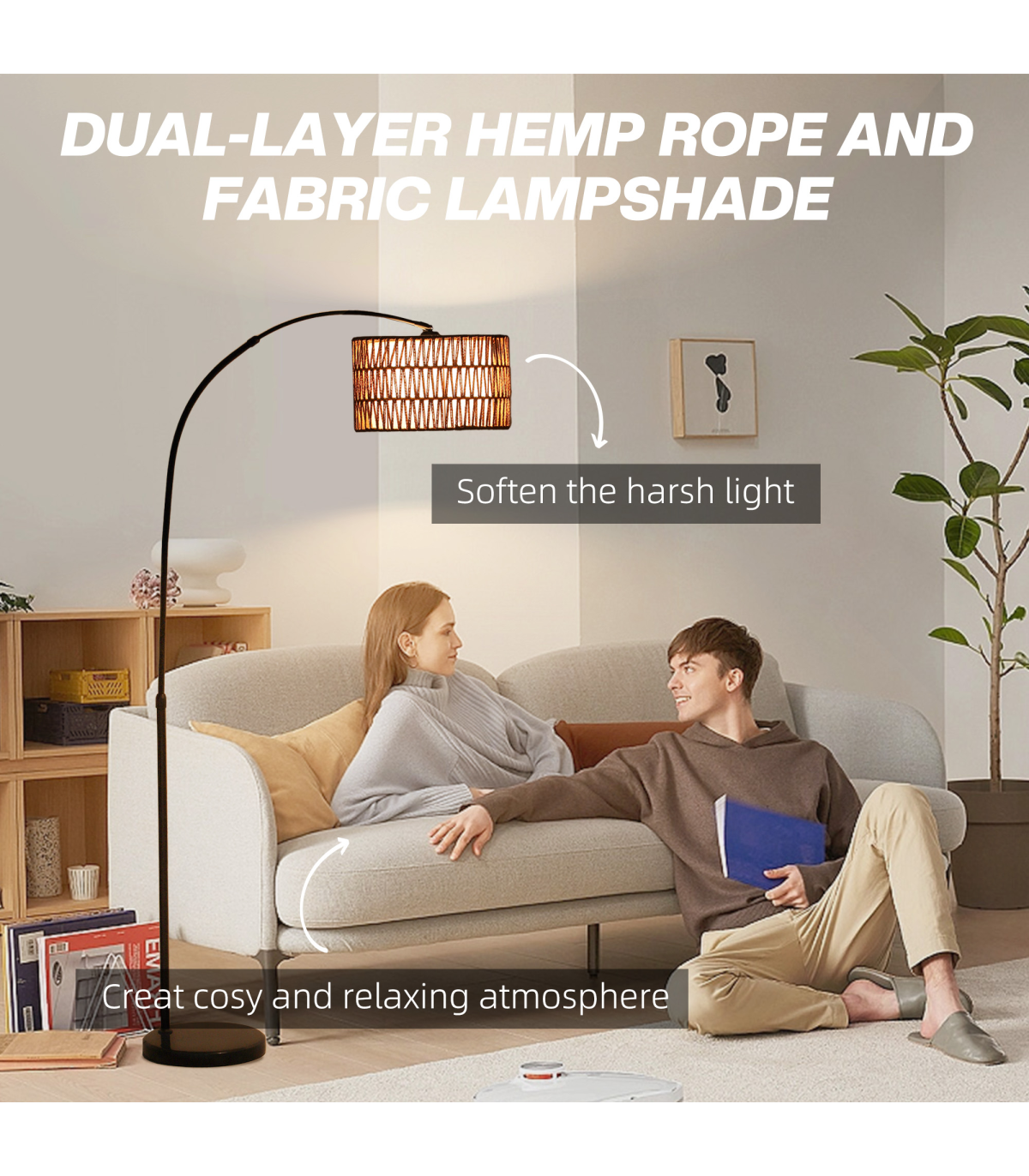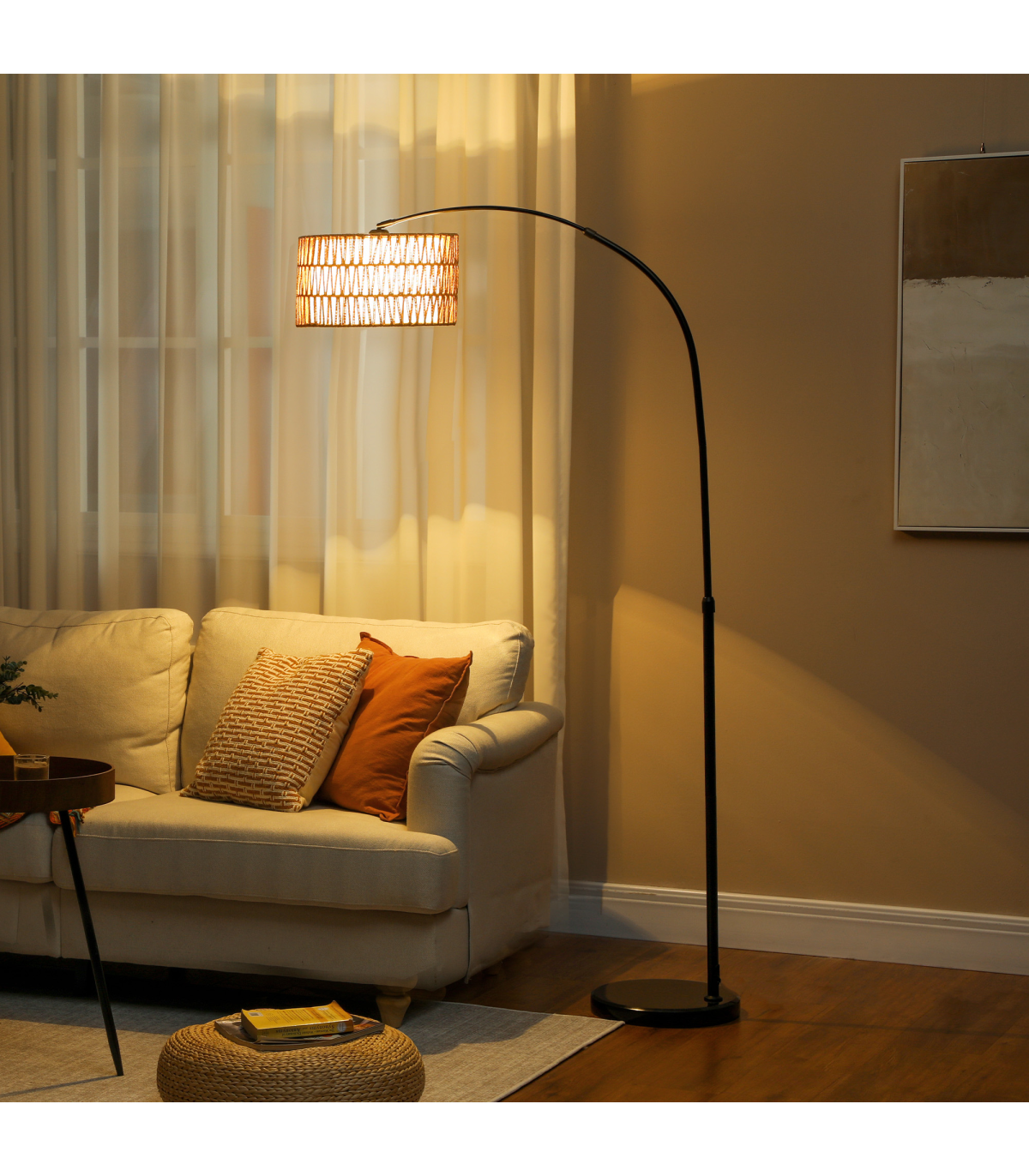 - Dual-layer lampshade with hemp rope and black metal in a classic lantern style