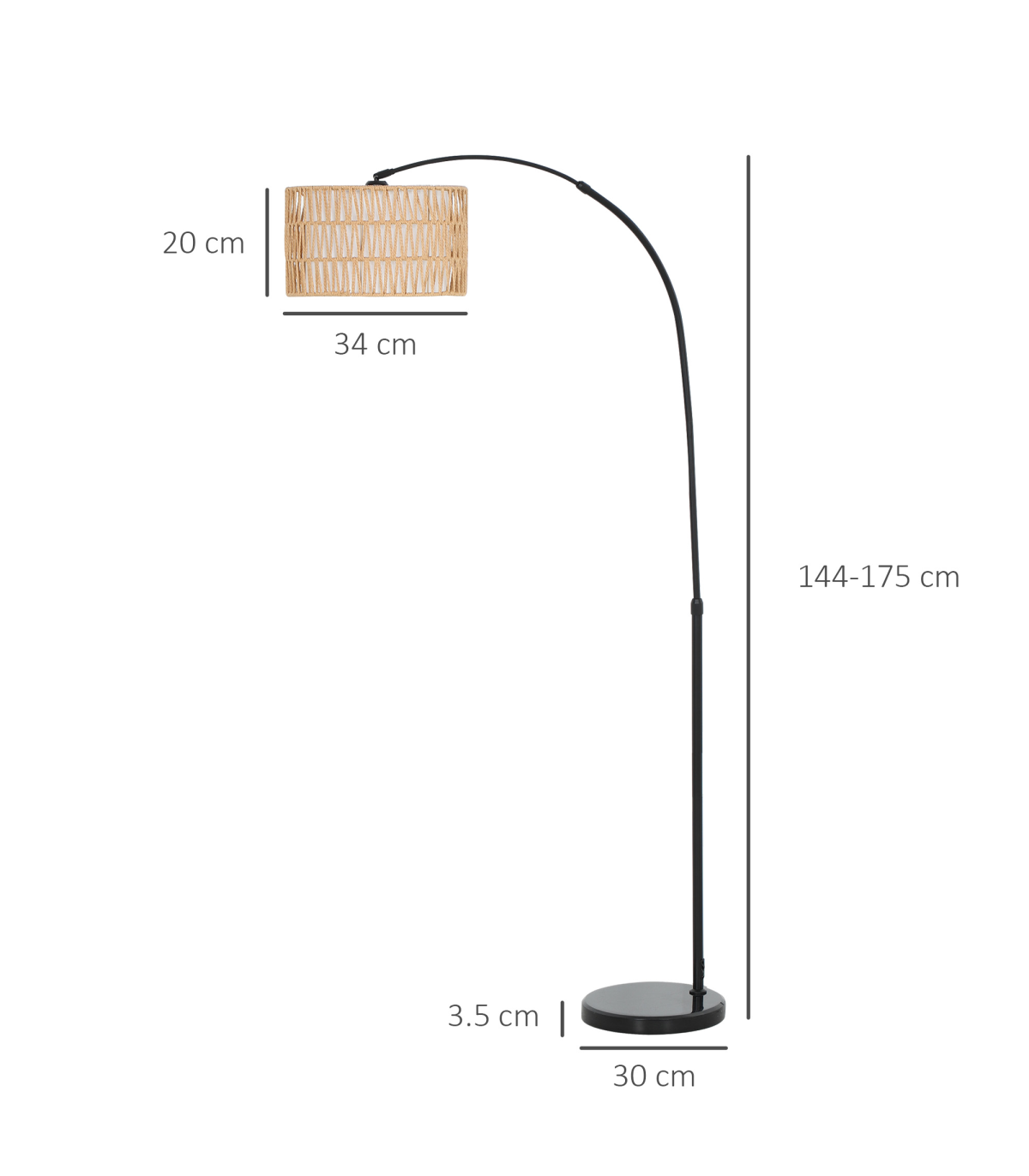- Overall Dimension: 93L x 34W x 144-175H cm