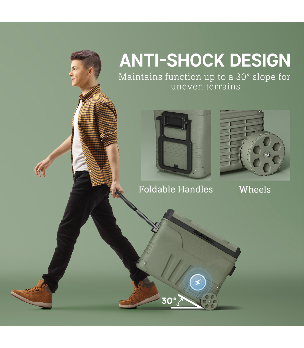 - Operates smoothly on up to 30° inclines with anti-shock