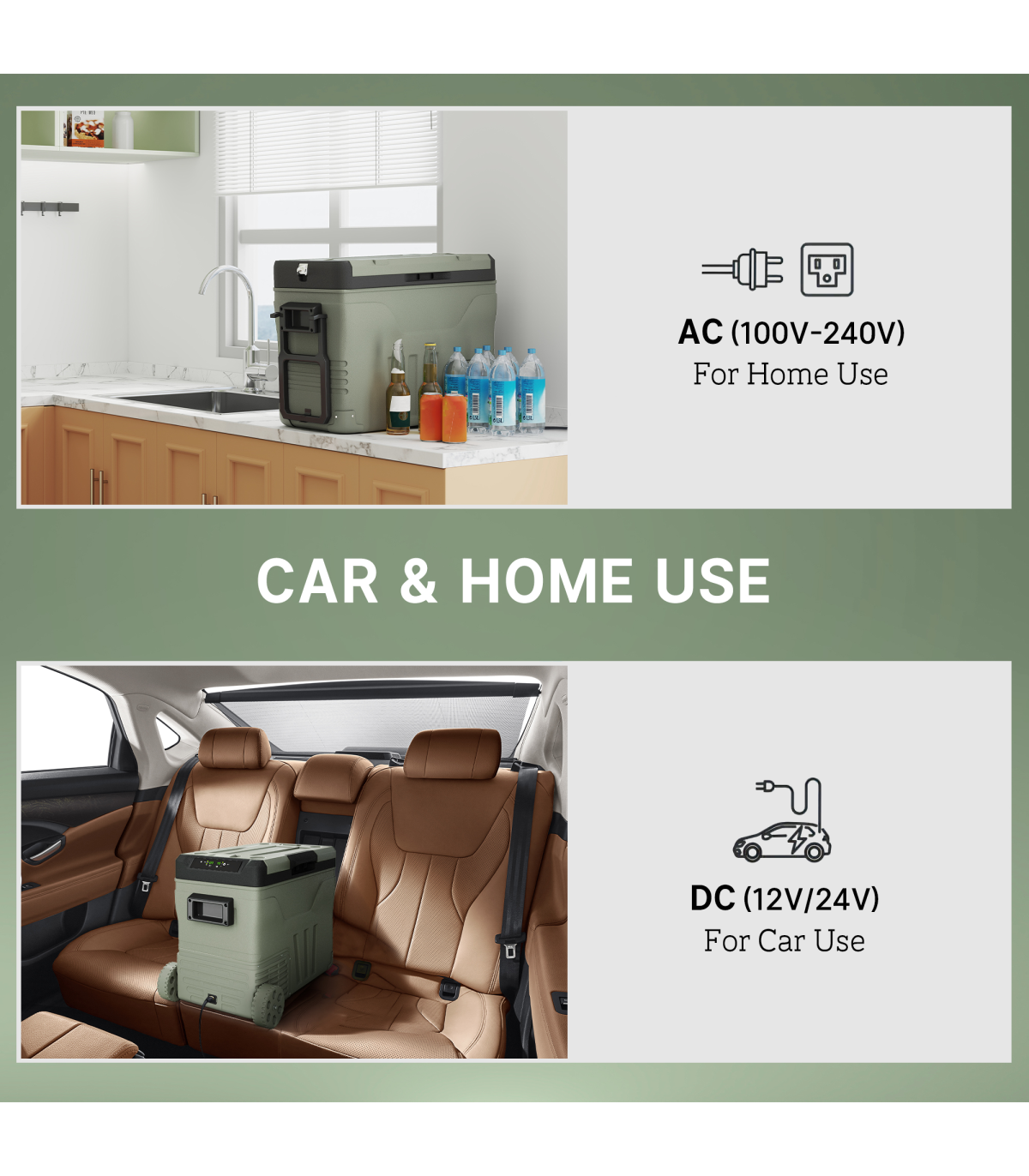 - Voltage: DC 12V/24V (for car use), AC 100V-240V (home use)