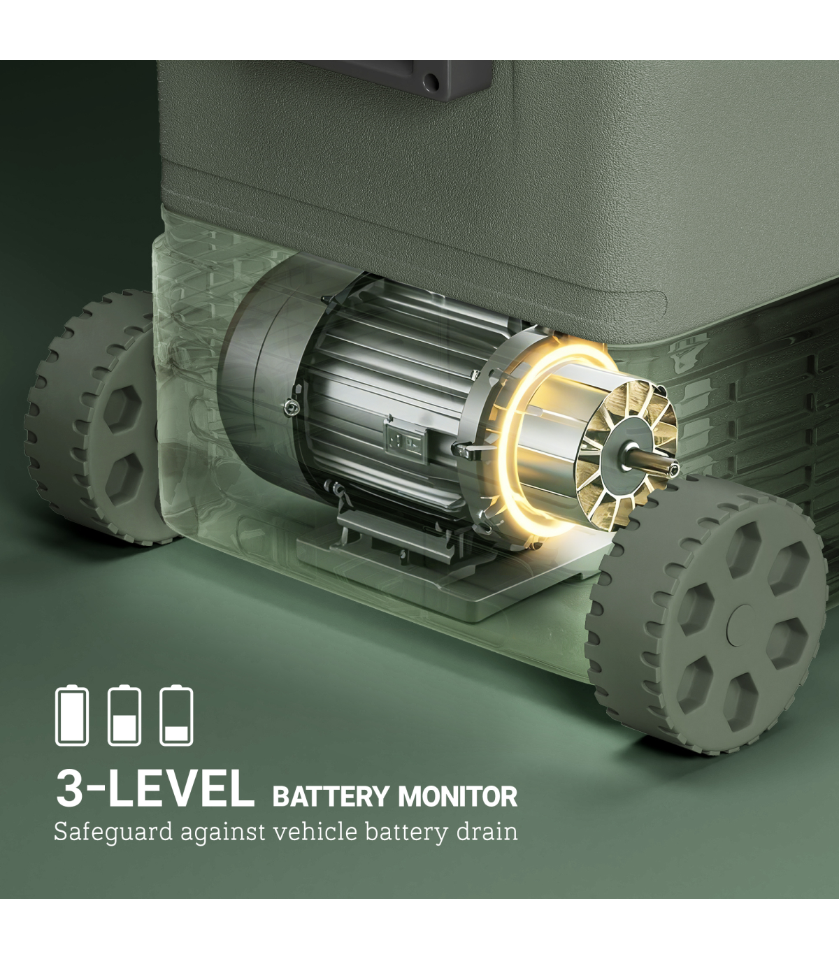- Battery protection settings (Low, Med, High) prevent vehicle battery drain