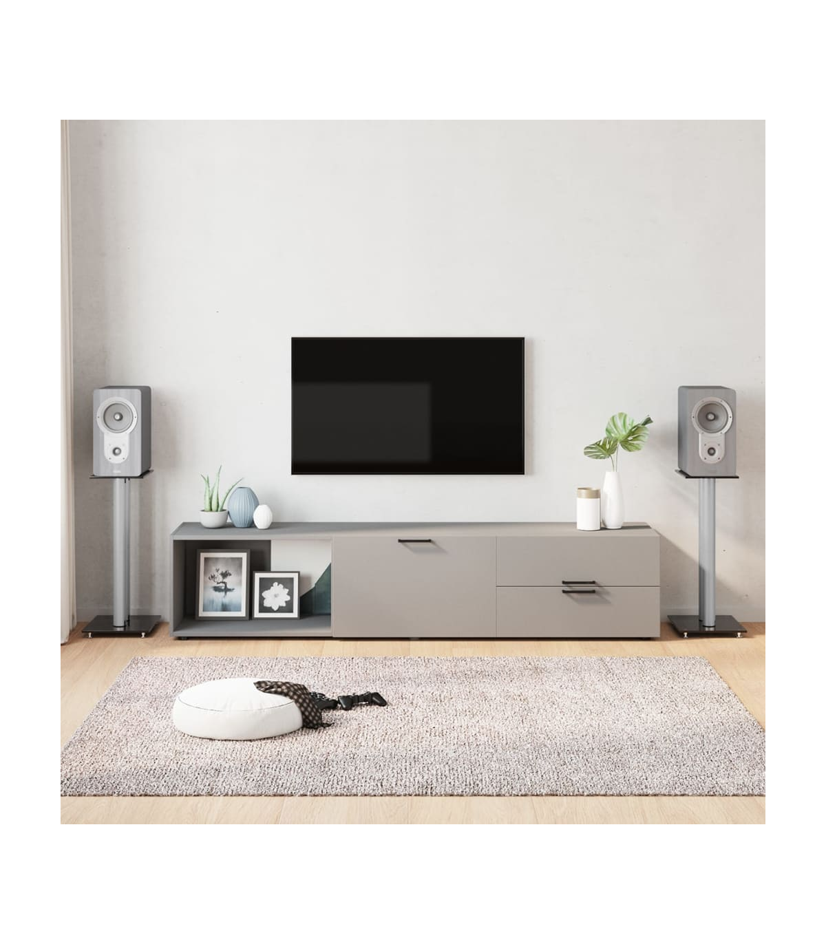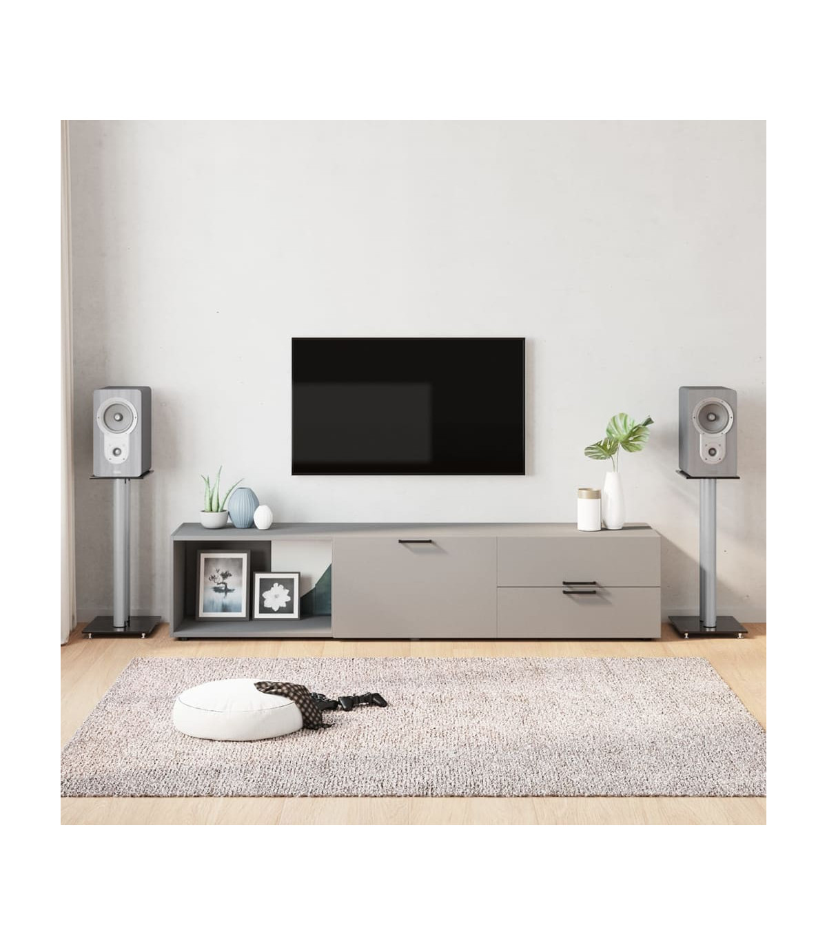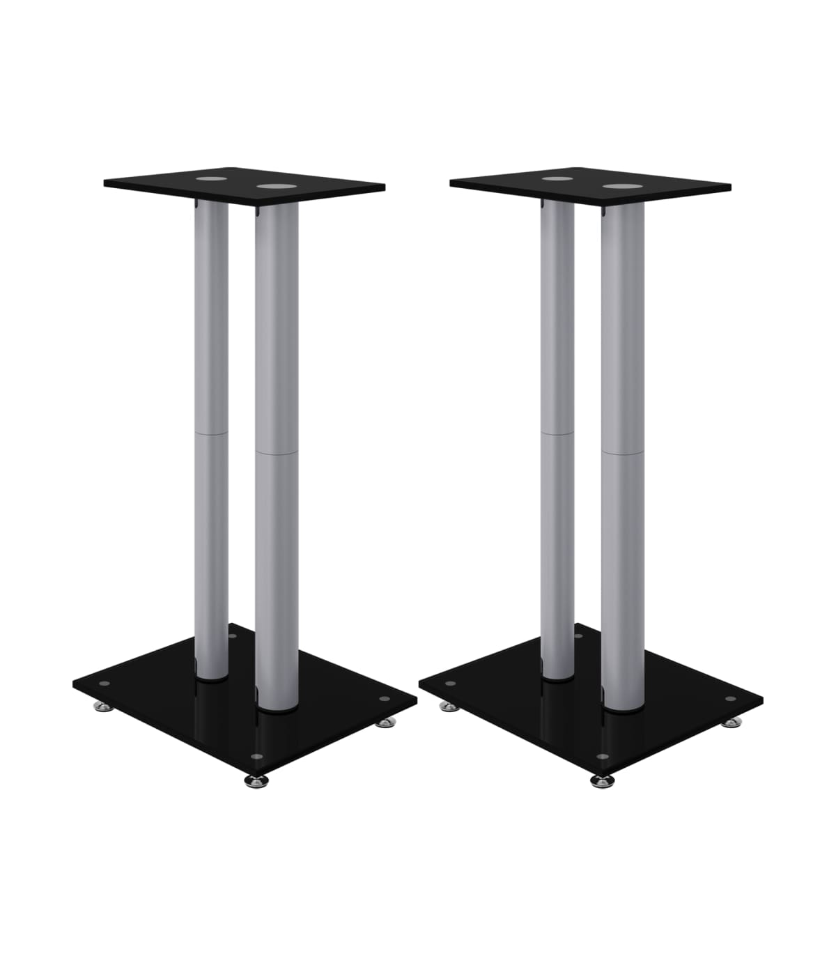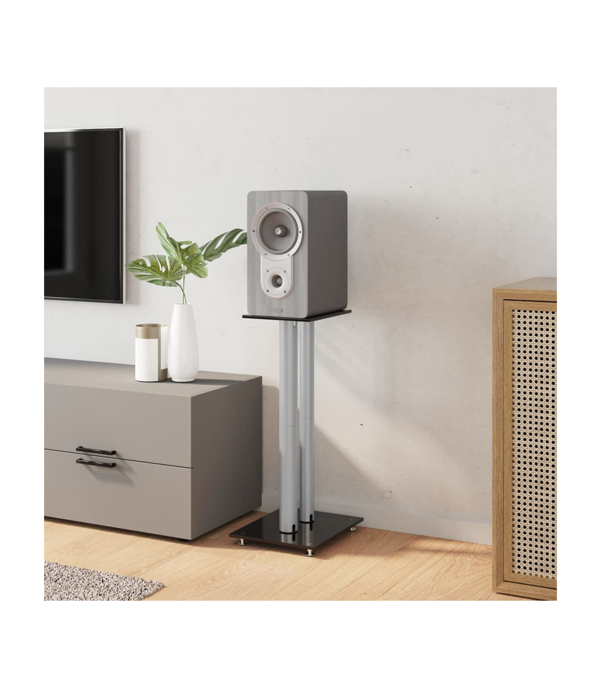Enjoy the quality of your free-standing sound system with the pair of speaker stands. Durable material: With a smart structure, tempered glass is stronger and more durable than any other glass. Tempered glass is known for withstanding forces like high impacts, scratches, blows, etc.Sturdy construction: The speaker floor stand's pillar is made of aluminium. Aluminium metal is lightweight and strong. It's resistant to corrosion with a self-protecting oxide layer. The aluminium frame ensures sturdiness and stability.Wire management: The hollow stand tube of the speaker mount allows you to hide the speaker wires inside, making your home look neater and more organised.Non-slip design: The four skidproof feet under the base plate help to reduce vibration and prevent your carpet or wood floor from being damaged by the base plate. Good to know:To make assembly as easy as possible, each product is delivered with a manual.