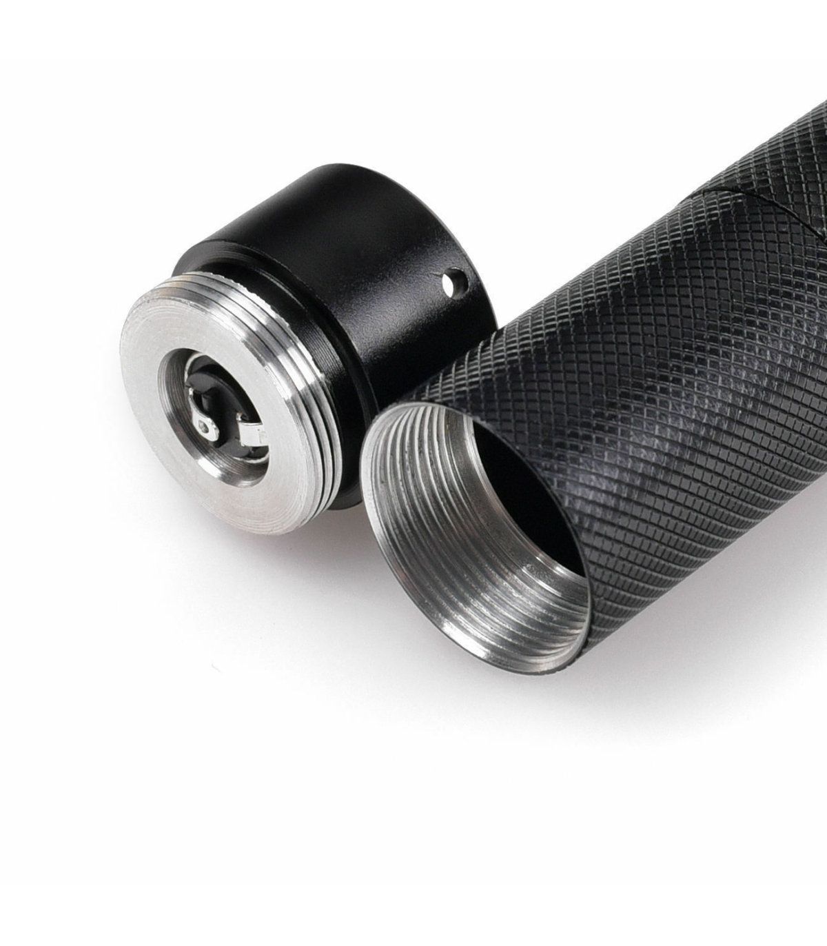 3.Install the battery in the laser. Put the negative pole (cathode) into the laser first, that means leave the positive pole (anode) touching the end cap.