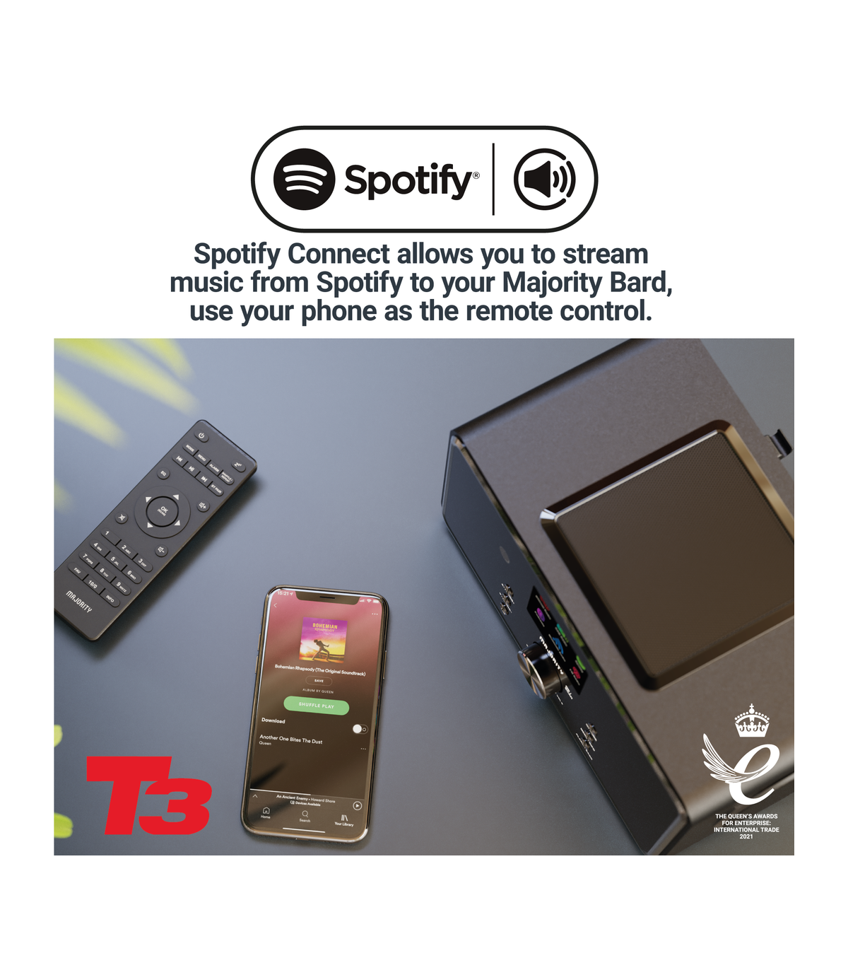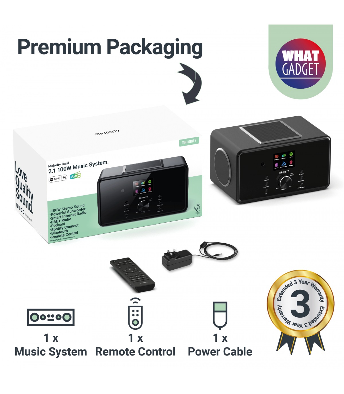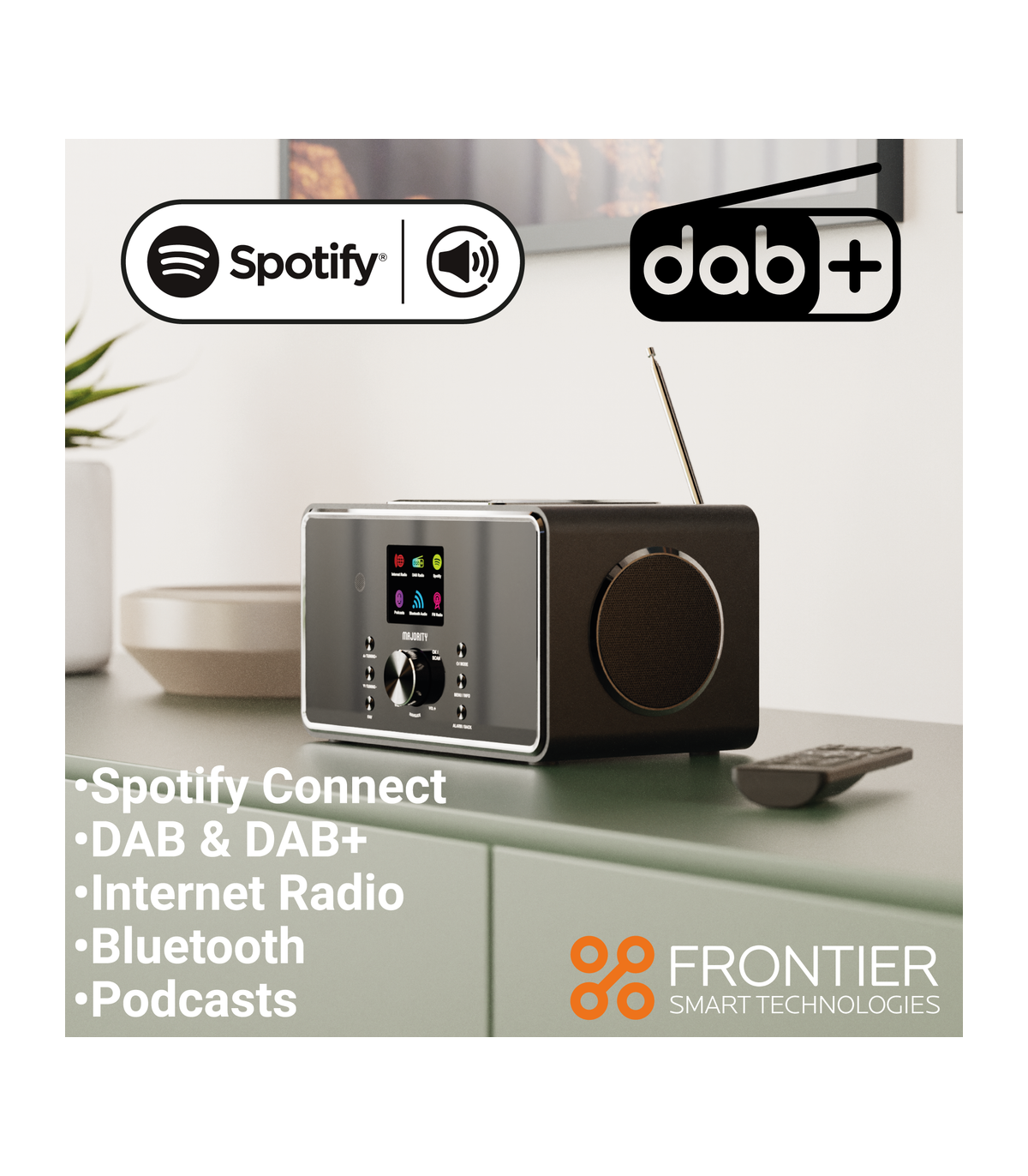 You’ll be spoilt for choice with the Majority Bard, a feature-packed music system designed to deliver outstanding sound and endless listening options. With built-in internet radio, you can explore thousands of stations and podcasts from around the world, while DAB+ and FM radio let you enjoy a huge variety of local content. Stream your favourite playlists wirelessly using Bluetooth or Spotify Connect, and enjoy them through powerful dual 4" speakers and a 5" subwoofer that delivers deep bass, crisp treble, and a booming 100 W output.