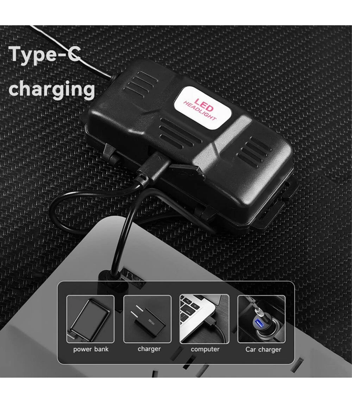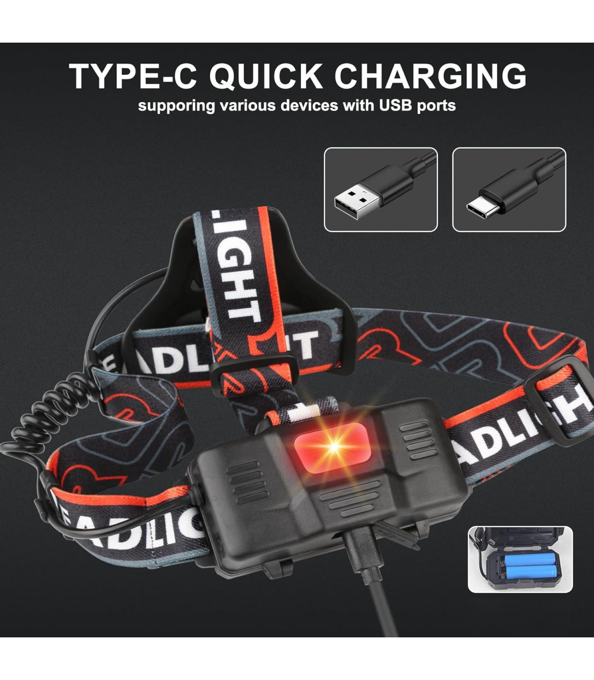 6. USB-C POWER INPUT: Super bright headlamp comes with 2 x rechargeable batteries make it convenient to be charged from car, computer, power bank, USB charging plug.