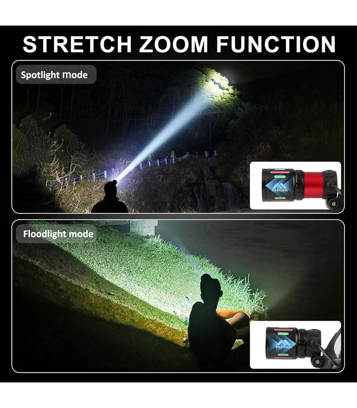 4. ADJUSTABLE FOCUS: It can be used as spotlight for long range observation when zoom out, and floodlight for large area illumination when zoom in by pulling the flashlight head.
