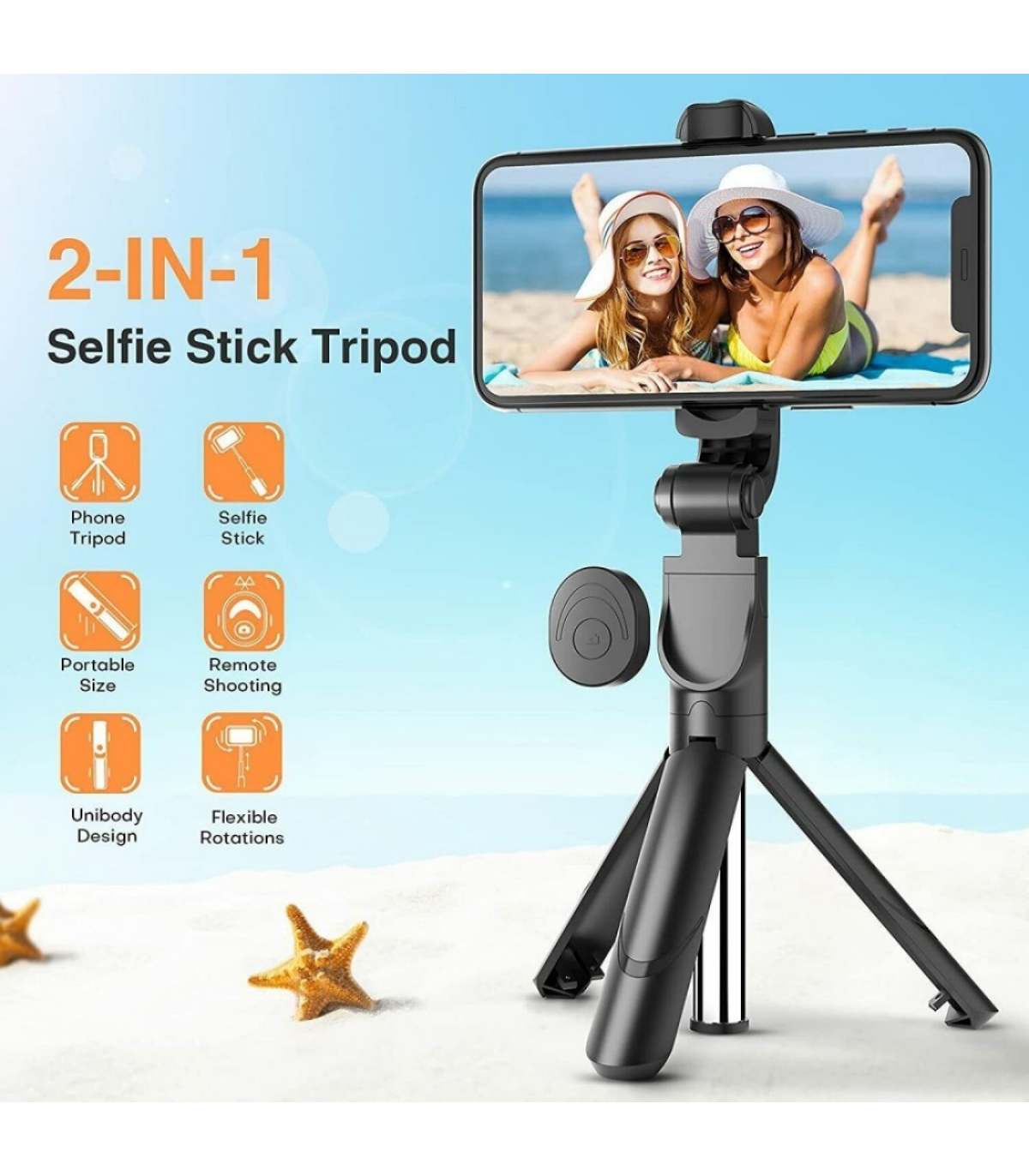 【Selfie Stick & Tripod】This compact selfie stick comes with a detachable wireless remote control and integrated with the tripod, with a wireless connection range of up to 10 meters. New experiences such as selfies, group photos, face-to-face, life records, video shooting, social live broadcasts, etc.