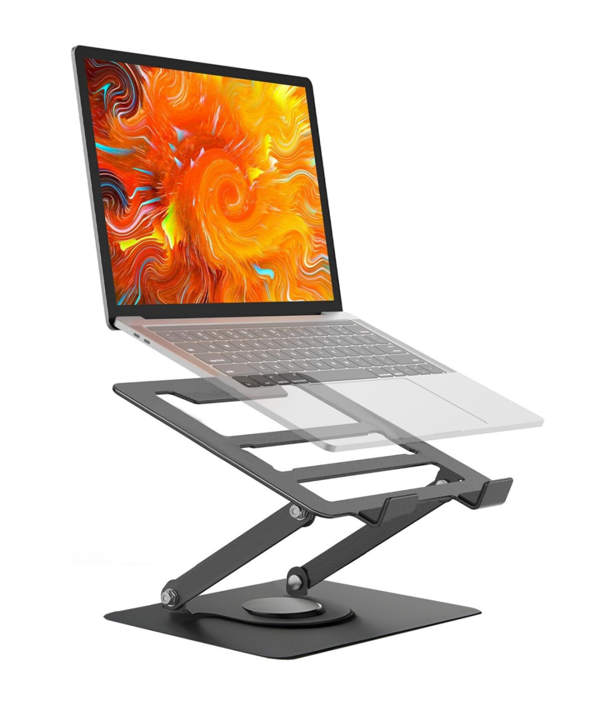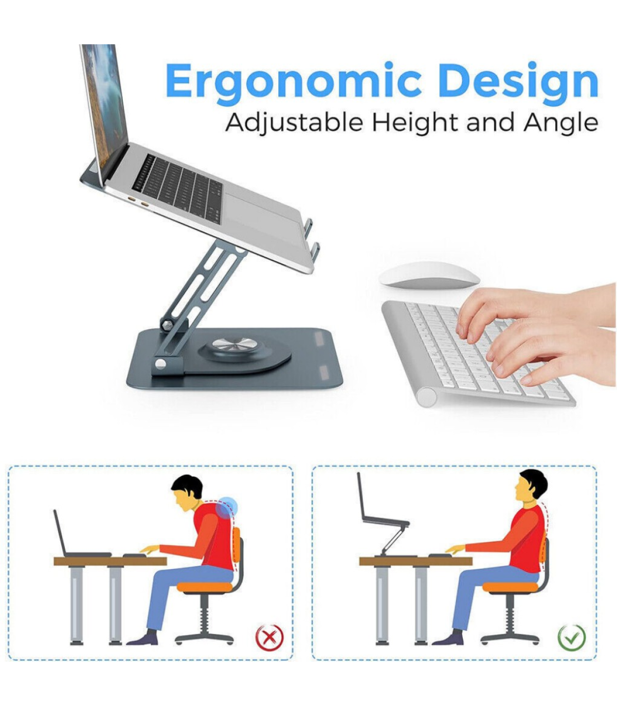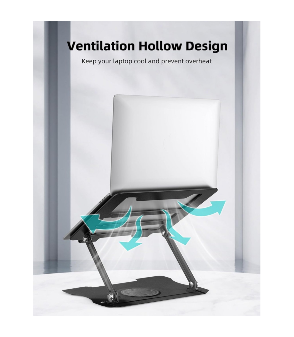 2. 360 ° rotation: It is equipped with a 360 ° rotation double axis to connect with the base, making 360 ° rotation more flexible. The computer bracket allows you to rotate your laptop to any angle.