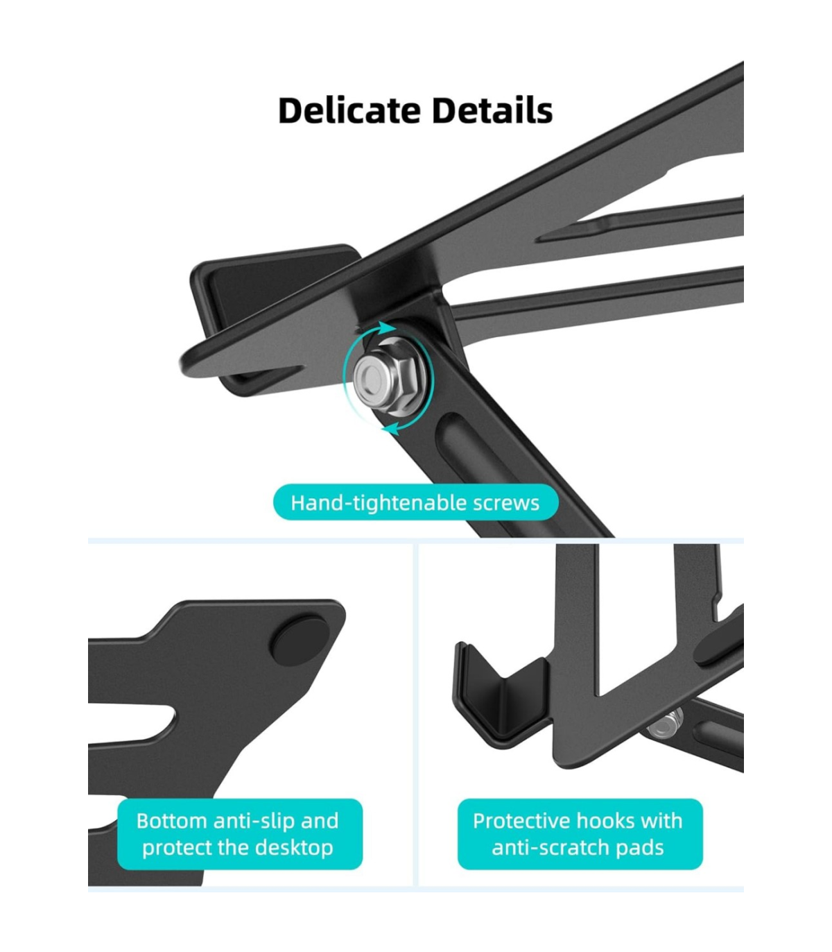 4. Ergonomic design: You can freely adjust the height and angle of the laptop bracket to reach the perfect eye level, which helps reduce shoulder and neck pain. Whether you sit or stand, it ensures you are in a comfortable position.