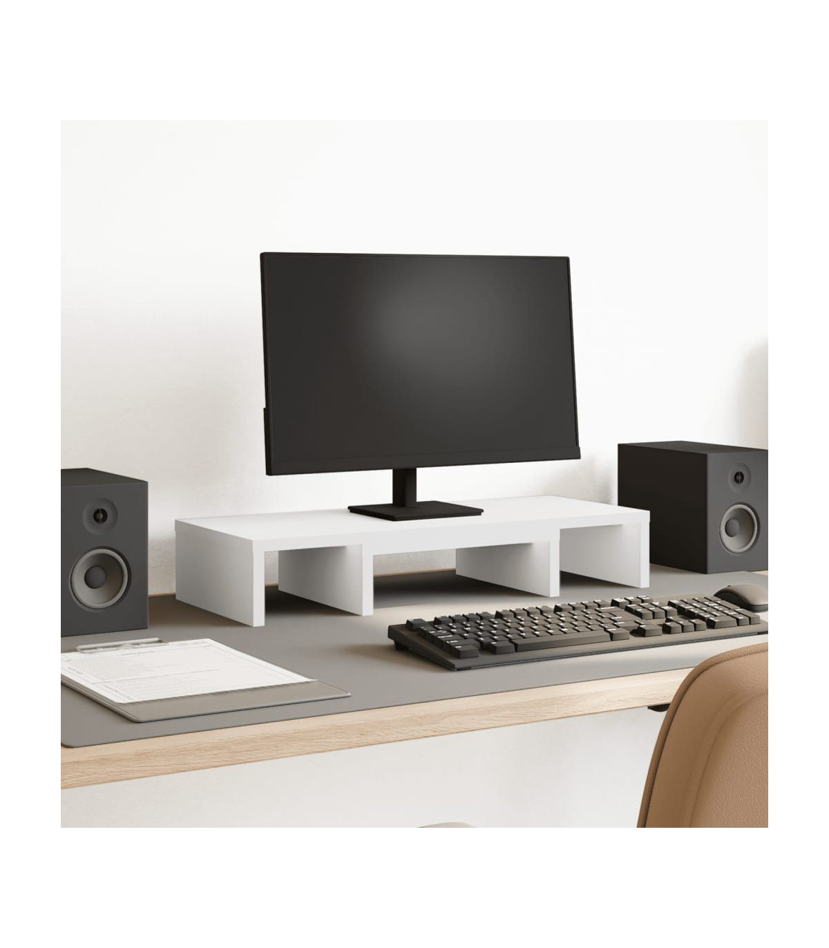 Enhance your workspace with the adjustable monitor stand for better viewing comfort and style! Stable and durable material: Engineered wood is a durable and stable material with a smooth surface that is resistant to moisture, warping, and splitting, making it a reliable choice for various projects.Customisable length: By extending the two larger monitor stands, this configuration maximizes the overall stand's length, offering a spacious platform ideally suited for two monitors.Customisable viewing angle: By adjusting the angles of the two larger stand risers, you can find the perfect viewing angle for reduced strain and increased productivity.Additional storage: The lower section includes ample storage compartments, offering generous space to neatly organize books, notebooks, keyboards, and accommodate a laptop.Easy maintenance: Thanks to its smooth surface, the computer monitor stand is easy to clean with a damp cloth and requires less maintenance.