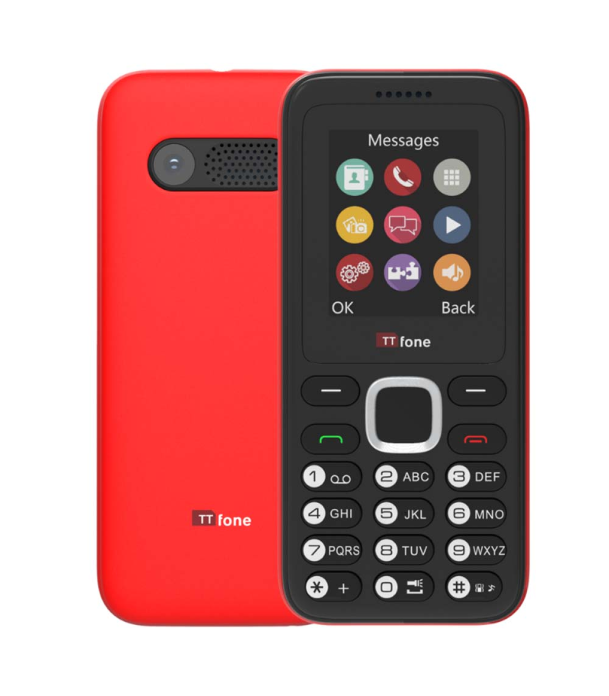 TTfone TT150 Unlocked Basic Mobile Phone UK Sim Free, Long Battery Life, Dual Sim with camera and games, easy to use, durable and light weight pay as you go - Red with Mains Charger and Vodafone Sim Card