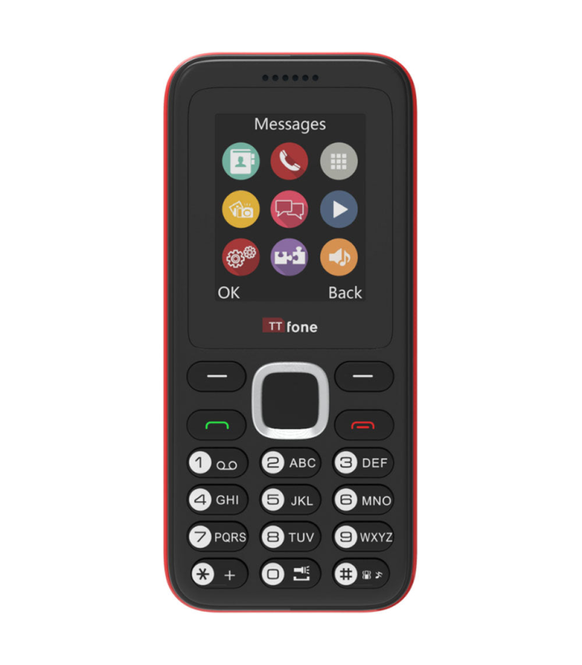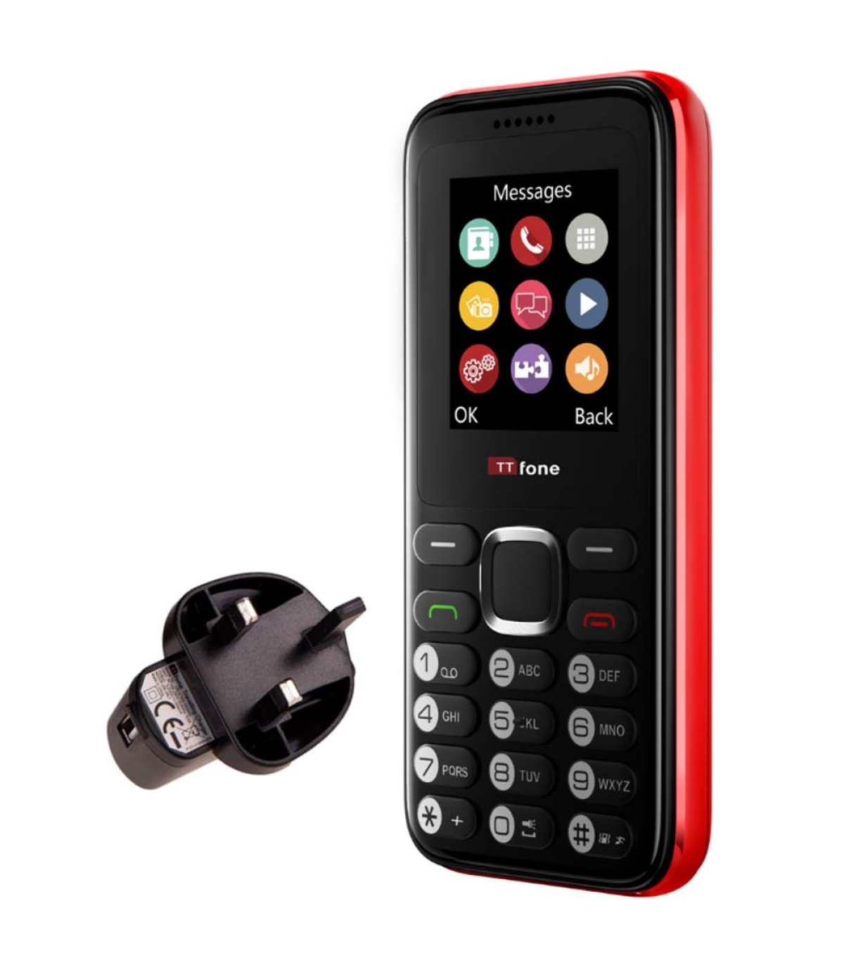TTfone TT150 Unlocked Basic Mobile Phone UK Sim Free, Long Battery Life, Dual Sim with camera and games, easy to use, durable and light weight pay as you go - Red with Mains Charger and Giffgaff Sim Card