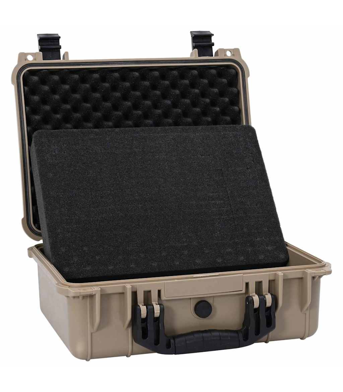 This handy flight case is a perfect combination of heavy-duty protection and easy transportation. It is ideal for travelling with your valuable items. Multiple protection: A tough outer shell allows shock resistance, while a strong seal creates water protection. The lockable function of the road case also adds extra safety.Portable design: You can take the hard case conveniently through its practical handle.Soft foam insert: The transport case comes with removable foam inserts to store your belongings snugly and safely.Pressure valve: The pressure valve can maintain the balance between internal and external pressures to help the toolbox adjust better at different elevation levels.Durable material: The flight case with foam is made of polypropylene and ABS, which makes it corrosion and temperature resistant. So, it offers a long service life.
