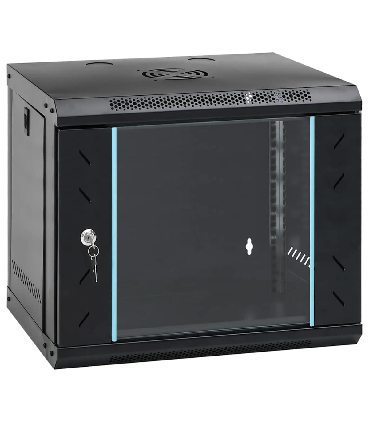 This 4U network cabinet is specially designed for placing network accessories in order, such as a router or fibre optic modem. This data cabinet, featuring a solid structure, is made of premium cold-rolled steel, making it strong and durable to use. It is compatible with 19" standard equipment. The removable side panels make it easy for the installation and maintenance of network accessories. Thanks to the included lock and key, the lockable front door prevents unwanted opening and keeps the items safe. You can either attach the cabinet to the wall or put it on the table. Please note: The cooling fan is not included.