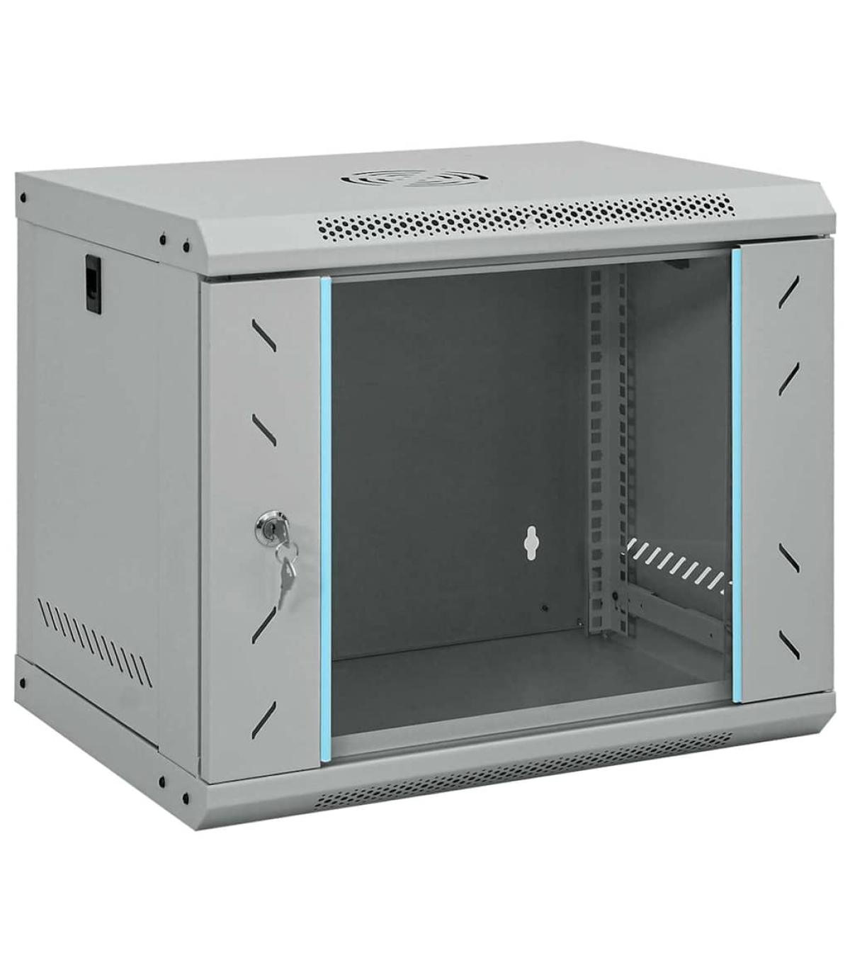 This 4U network cabinet is specially designed for placing network accessories in order, such as a router or fibre optic modem. This data cabinet, featuring a solid structure, is made of premium cold-rolled steel, making it strong and durable to use. It is compatible with 19" standard equipment. The removable side panels make it easy for the installation and maintenance of network accessories. Thanks to the included lock and key, the lockable front door prevents unwanted opening and keeps the items safe. You can either attach the cabinet to the wall or put it on the table. Please note: The cooling fan is not included.