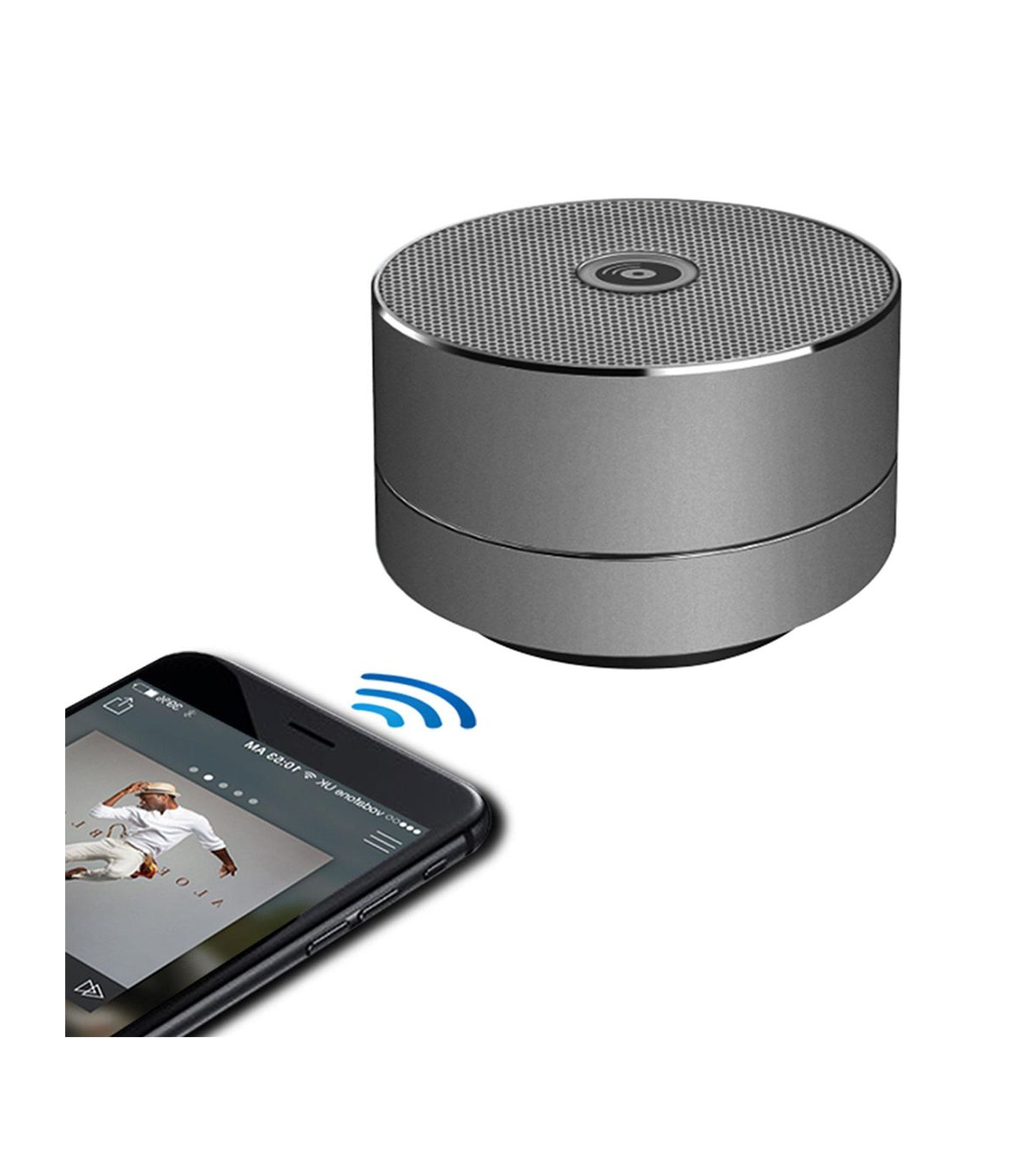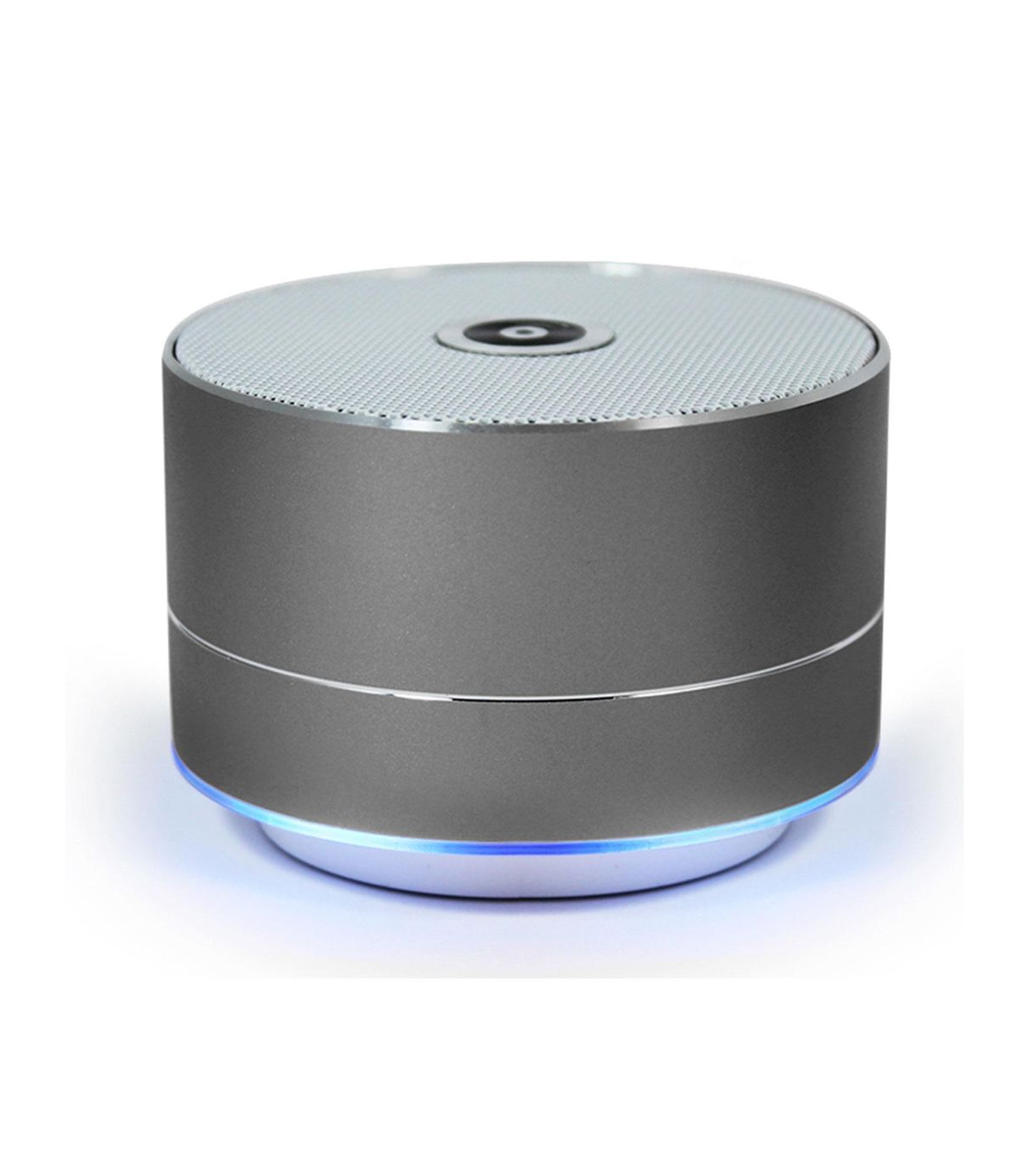This lightweight, durable Bluetooth speaker combines big sound with a small size for the ultimate in portable music technology. Forged in solid metal with a space grey finish, it boasts a stylish design and hardy construction, as well as a blue, LED light display feature. It offers hands-free support for ultimate convenience and is compatible with all Bluetooth devices, and other smartphones and tablets. It comes with a standard 45mm driver for precise audio reproduction and delivers high-quality, dynamic sound for five hours of uninterrupted playback time. Compact and easy to transport, this highly portable device is a must-have for getting a party started on the move.