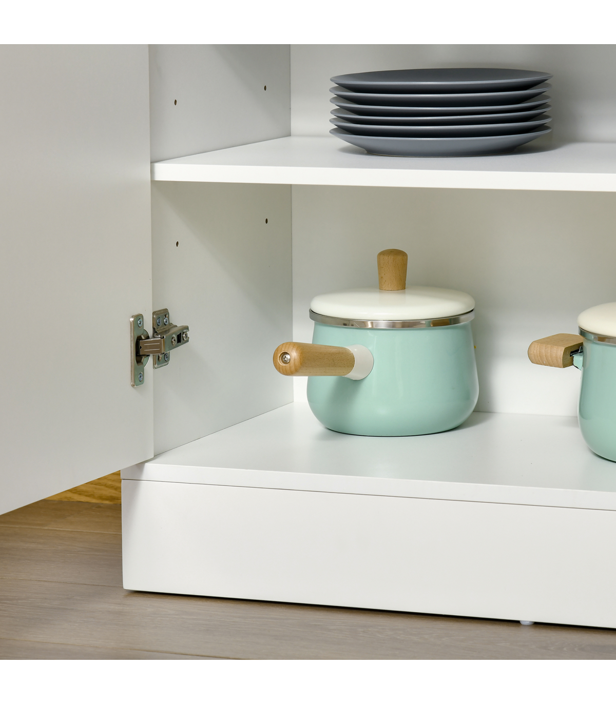 a mix of open and discreet storage. Made from a blend of MDF and particle board, the structure of the kitchen dresser is sturdy and reliable for daily use. Add style, whilst reducing visible clutter with this handy kitchen cupboard.