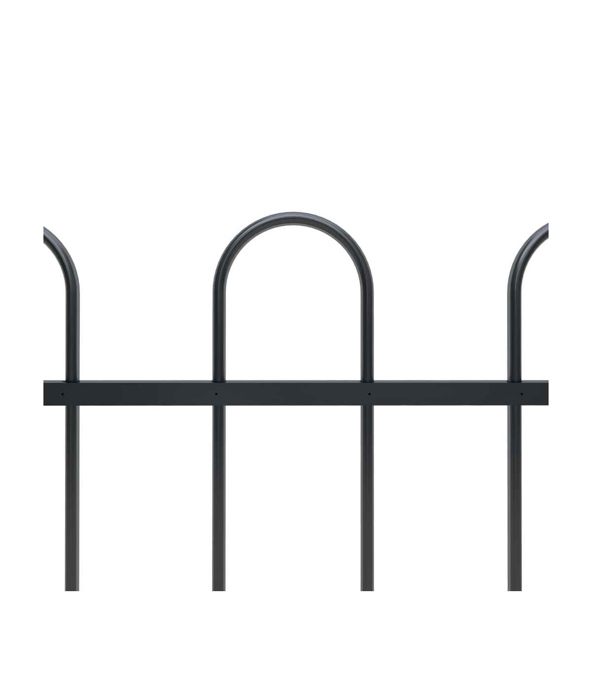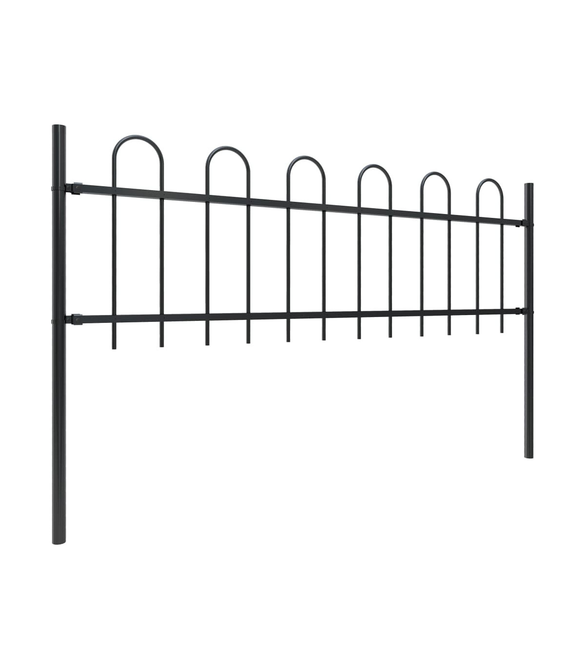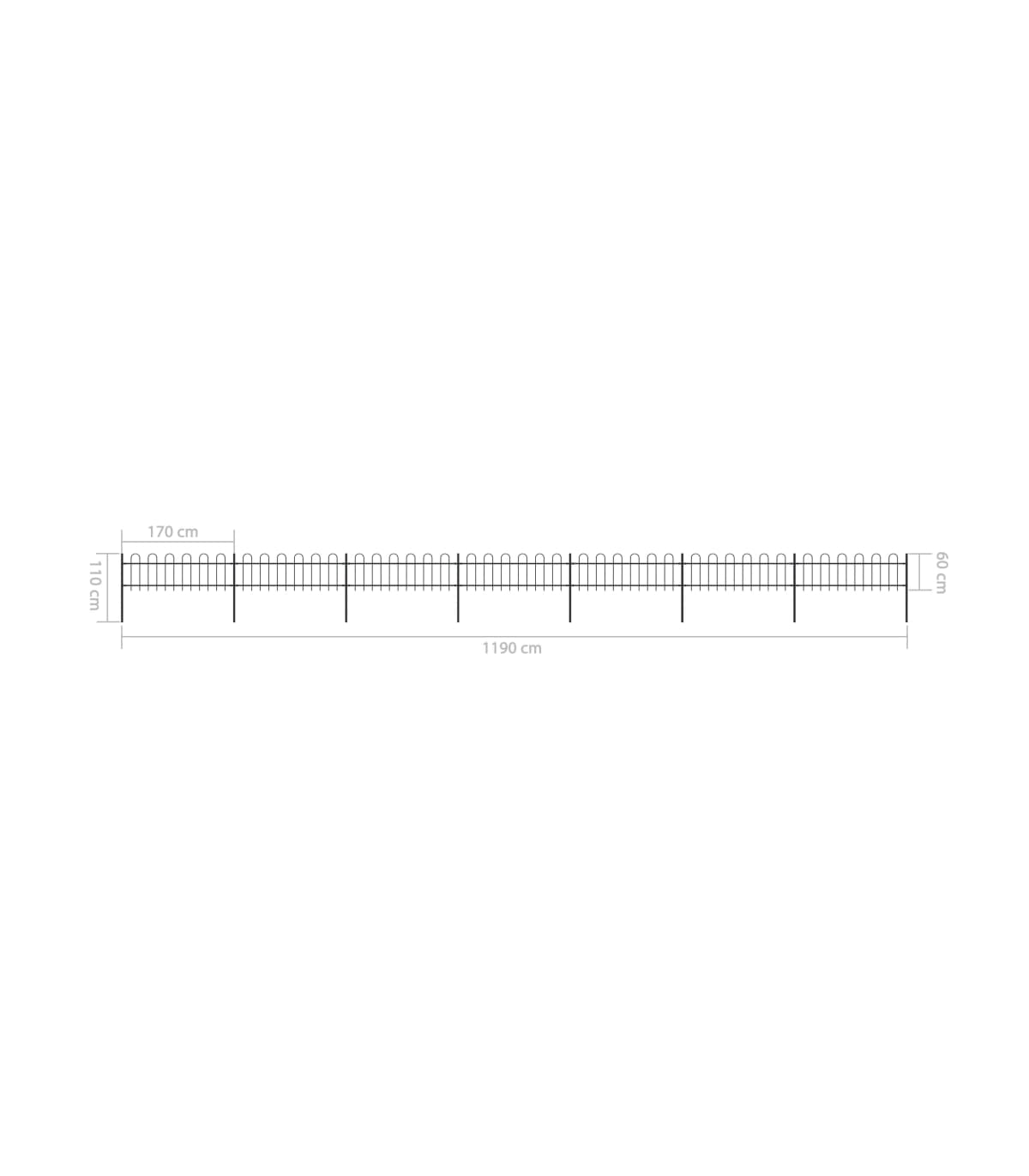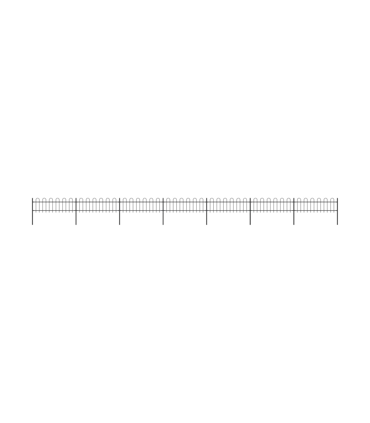 Create an elegant fence around your garden, home, or walkway with our garden fence! Our decorative steel garden fence, consisting of 7 fence panel and 8 posts, has a total length of 11.9 metres. It will form a sturdy, safe and maintenance-free perimeter barrier for your garden, home, or business property. With vertical bars with hoop top and strong horizontal brace as reinforcement to the frame, our garden fence will provide a high degree of security. Manufactured from heavy-duty, powder-coated steel, the outdoor fence is very strong and thus stable, sturdy and durable. Thanks to the included mounting materials, the garden fence is easy to assemble. Note: You can buy more sets to make the fence as long as you like.