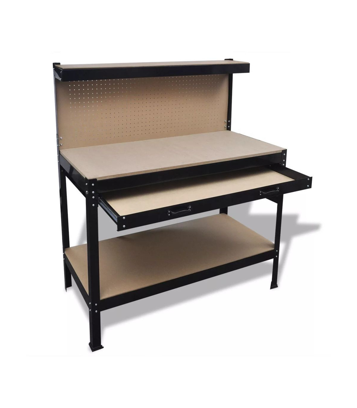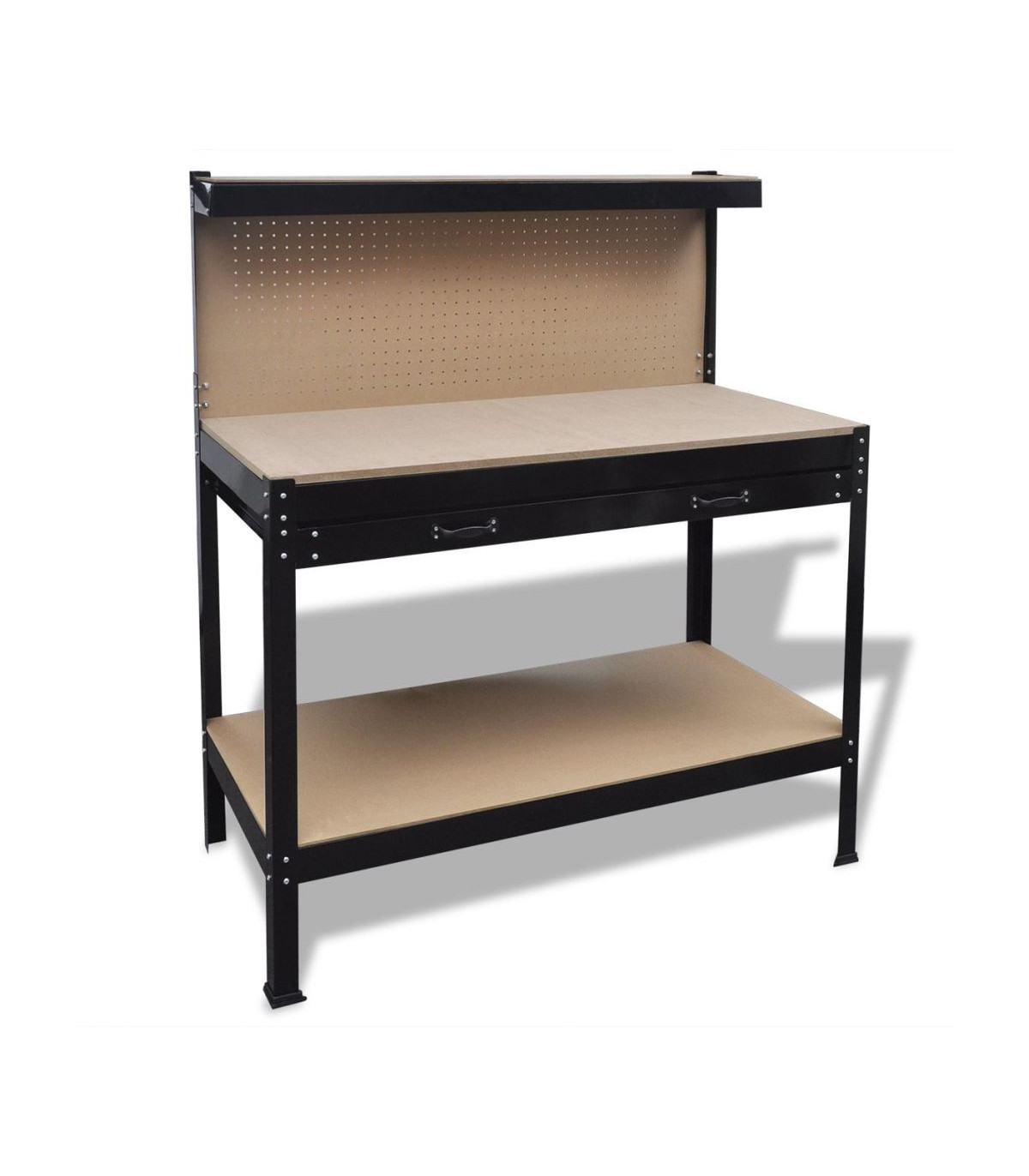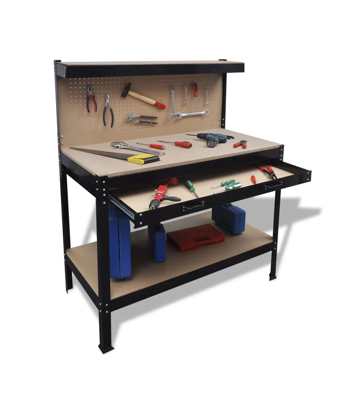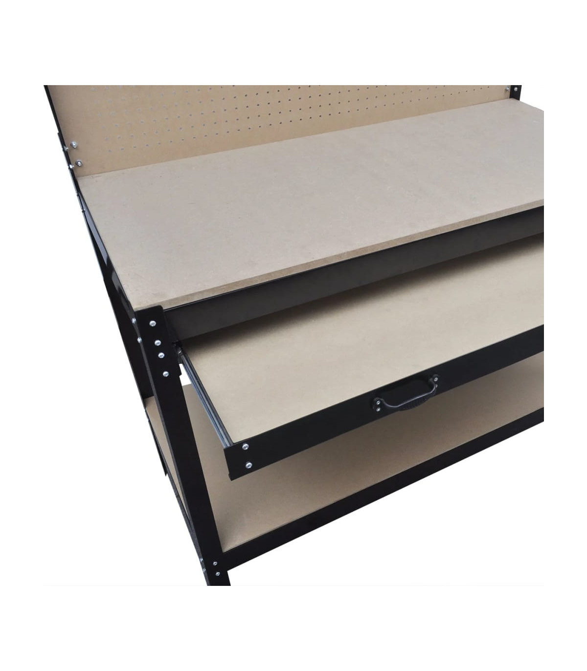 This steel workbench will be perfect for both professional and personal use. The large drawer provides ample storage space for all kinds of tools and accessories. And your tools can be clearly laid out and always within reach thanks to the practical pegboard with hooks. Bulky tools can be placed on the bottom shelf. Thanks to the large and stable work surface, you can efficiently work on even larger workpieces. Made of high-quality steel and MDF, this workbench is stable and durable. This workbench is quite easy to assemble and the mounting accessories are included.