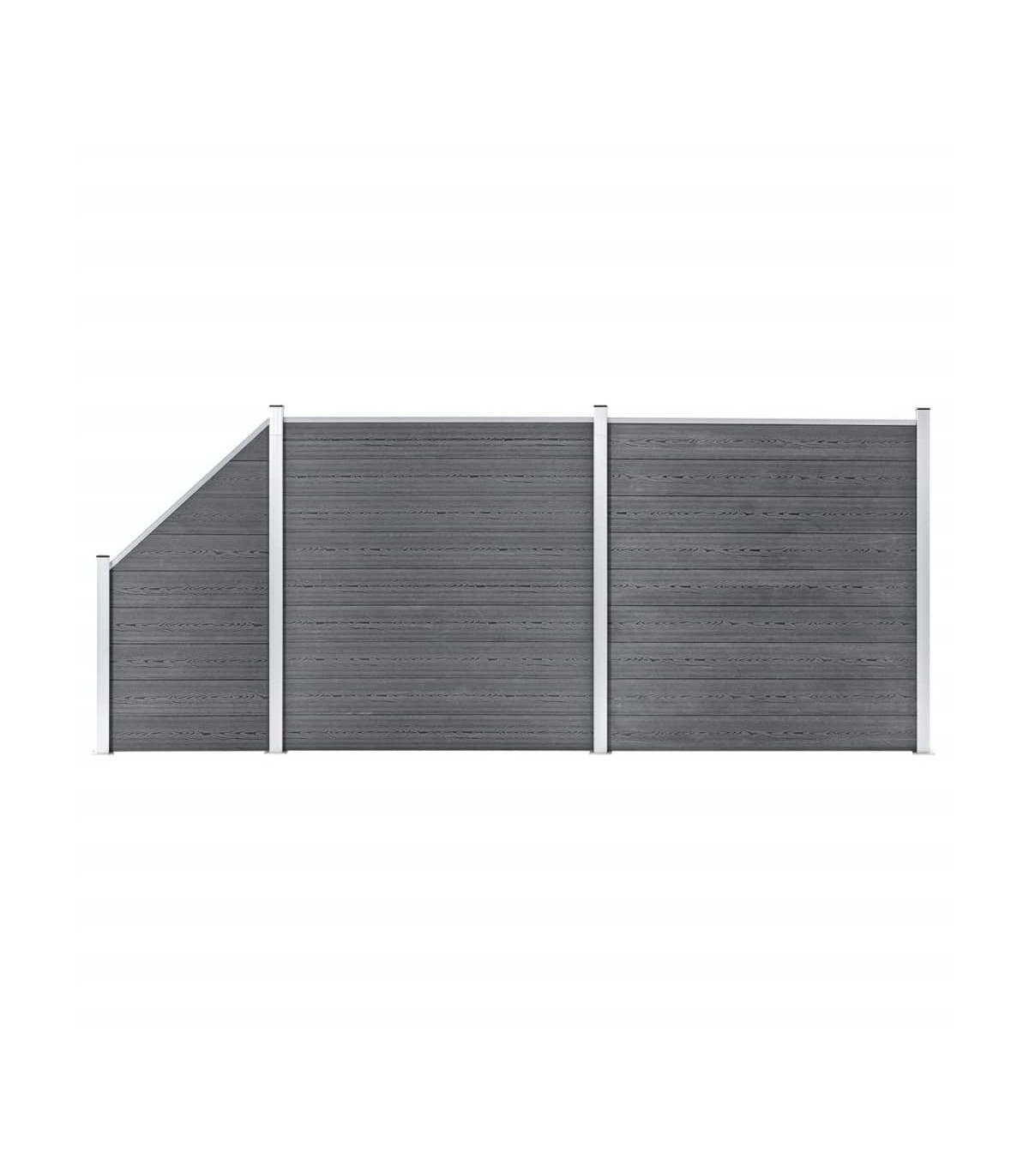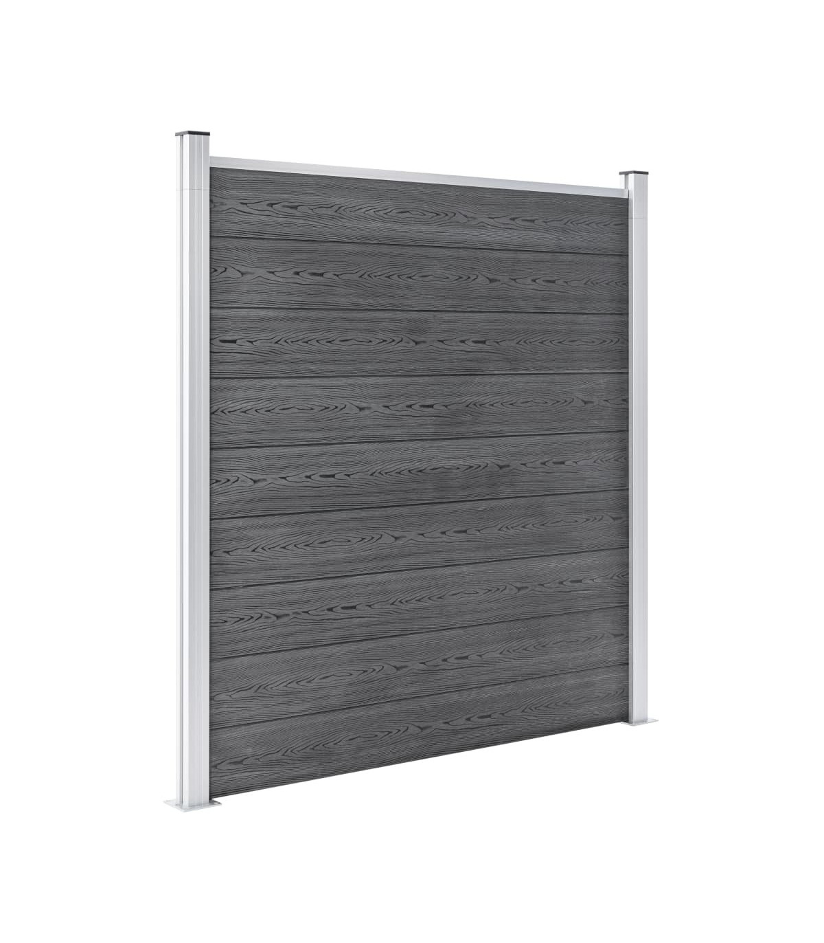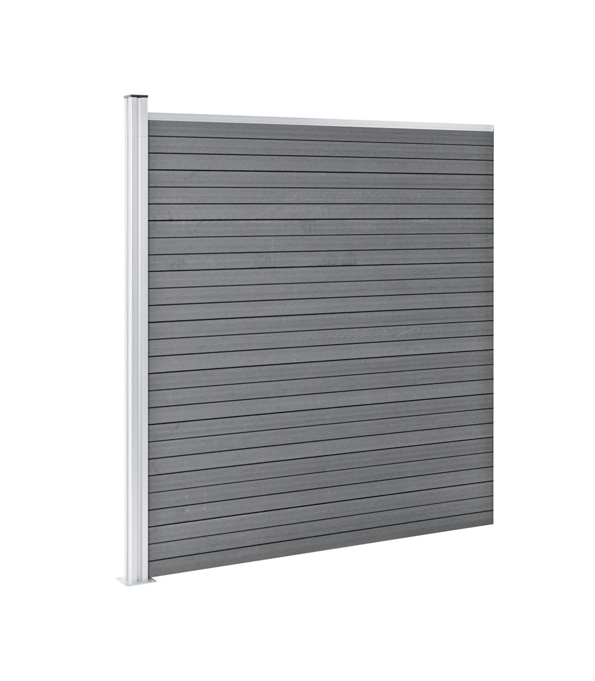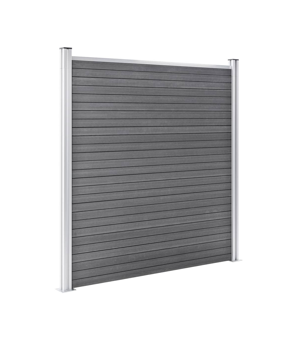 Our fence panel set can be used as garden barrier or residential fence for privacy and security. This WPC fence has a wood grain print on one side and regular print on the other side, so you can choose the design you like best. Our wood-plastic composite panel does not require any additional treatment like oiling or painting. It is very durable and resistant to rot or rust. Thanks to the aluminium top profile, the fence boards can be tightly attached to each other, which increases their rigidity and strength against impact. Designed with the modular system, the fence boards are easy to install and allow you to expand the fence freely. These posts feature three slots, which enable you to assemble the fence in various ways, for example, in a straight line (180 degrees), right angle (90 degrees) or "T"-shape. The multifunctional steel feet can be fixed in two ways. The first one is by screwing them onto a surface, using the supplied anchor screws. The second way is by anchoring them into a cement base, using the ground spike (not included). This fence set is easy to assemble. Delivery includes 9 WPC boards, 2 posts, 2 steel bases and 1 aluminium bar.