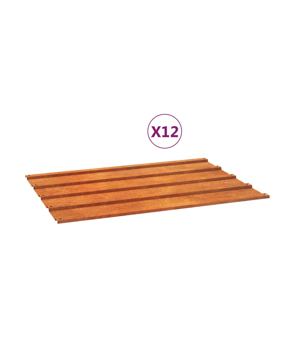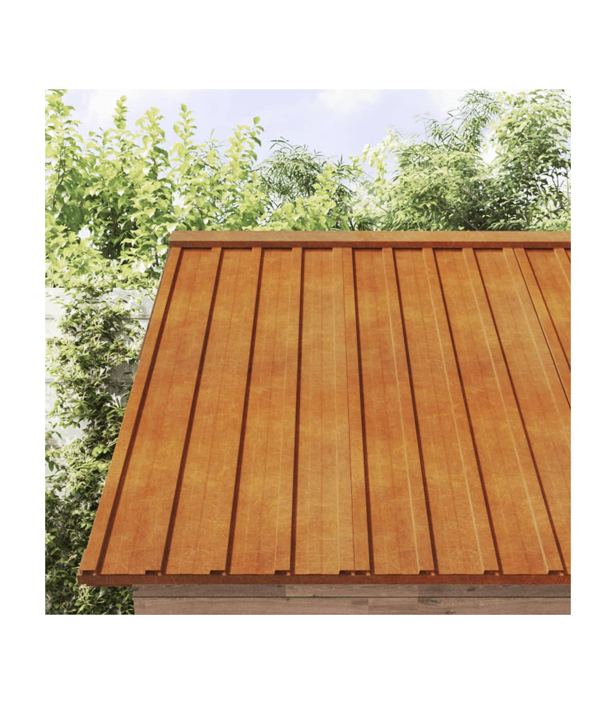 These 36-piece metal roof panels will be the perfect choice as roofing materials for sheds, stables, commercial buildings, mobile homes, and so on. Durable material: Corten steel, also known as weathering steel. This is anti-corrosive by its very nature. It develops a rusty protective layer against corrosion when first exposed to atmospheric conditions. Thus, you don't need to paint it. This can help you save on maintenance and repair costs. The distinctive brown colour on the corten steel will surely be an eye-catcher. Finally, weathering steel is exceptionally durable and will stand up to the test of time.Versatile functions: These roof sheets are suitable for temporary garages, sheds, stables, mobile homes and so on. Additionally, they can fit into any design as per your taste.Easy installation: These corrugated metal roofing sheets are very easy to install and maintain, making them a desirable roofing material for many homeowners and builders. Good to know:This product is not rusted yet and has a normal metal colour when you receive it, but rust will develop over time. You could speed up the rusting process by spraying it with soap water and salt water. To keep your clothes stain-free, avoid contact with the developing rust layer.To make assembly as easy as possible, each product is delivered with a manual.